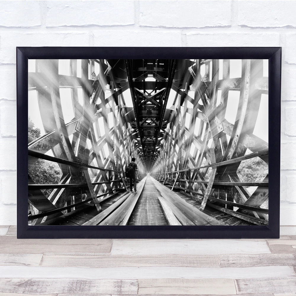 Black And White Street Mood Ciamis West Java Indonesia Bridge Wall Art Print