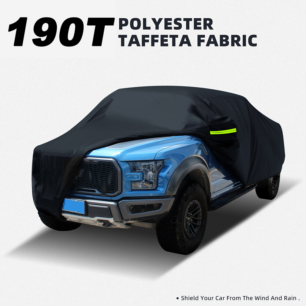 Pickup Truck Full Car Cover Black Anti-UV Outdoor Protection for Toyota Tundra Material: Polyester Taffeta(190T) Size: TXL: 238'' x 86.6'' x78.8'' Features: All-Weather Protection Car cover 100% waterproof all weathers. Car cover can achieve the effort of Sunproof, Windproof, Hailproof, Snowproof, Dustproof Scratch resistant and protect your vehicle from odirt, UV pollutants,Sand, Leaves, Branches, Snow, Rain, Frost, Birds Dropping. Premium Material Lightweight material, The high-density 190T polyester fabric makes it perfect and long use for outdoor/indoor against all weathers. And silver surface is high temperature resistant with reflecting high-sensitivity performance in hot summer. Professional and Safety Equipped with Windproof straps. At Front & Rear. To Fix Your Auto Cover In Heavy Wind Weather. F luorescent Light Strips are attached to the front, middle and rear of the car to prevent collision accidents in dark environments and greatly improve the safety of roadside parking at night. Wide Fitment Fit for Most Pickup. Delivery contents: 1 x Car Cover, 1 x Storage Bag, 6 x F luorescent Light Strip. Notice: Please take measure before your purchase. Your order will be shipped within 1 business days ( Excluding Weekends and Public Holidays)after your payment clear. * We only ship out within US. Domestic Packages are shipped via Standard Delivery from our stock in Walton, KY, US. * Item will be delivered within 1 - 6 business days in US. We ship to Paypal confirmed address ONLY. Please make sure your address in PayPal is matched with your shipping address before you pay. * We do not offer in store pick up and return service. Regardless of response, buyer can return item within 30 days and get a full refund. Item must be returned in good condition in original packaging, not damaged, not stained, no cut.