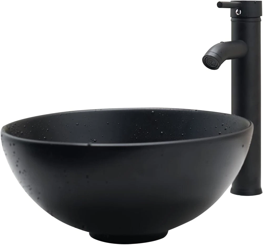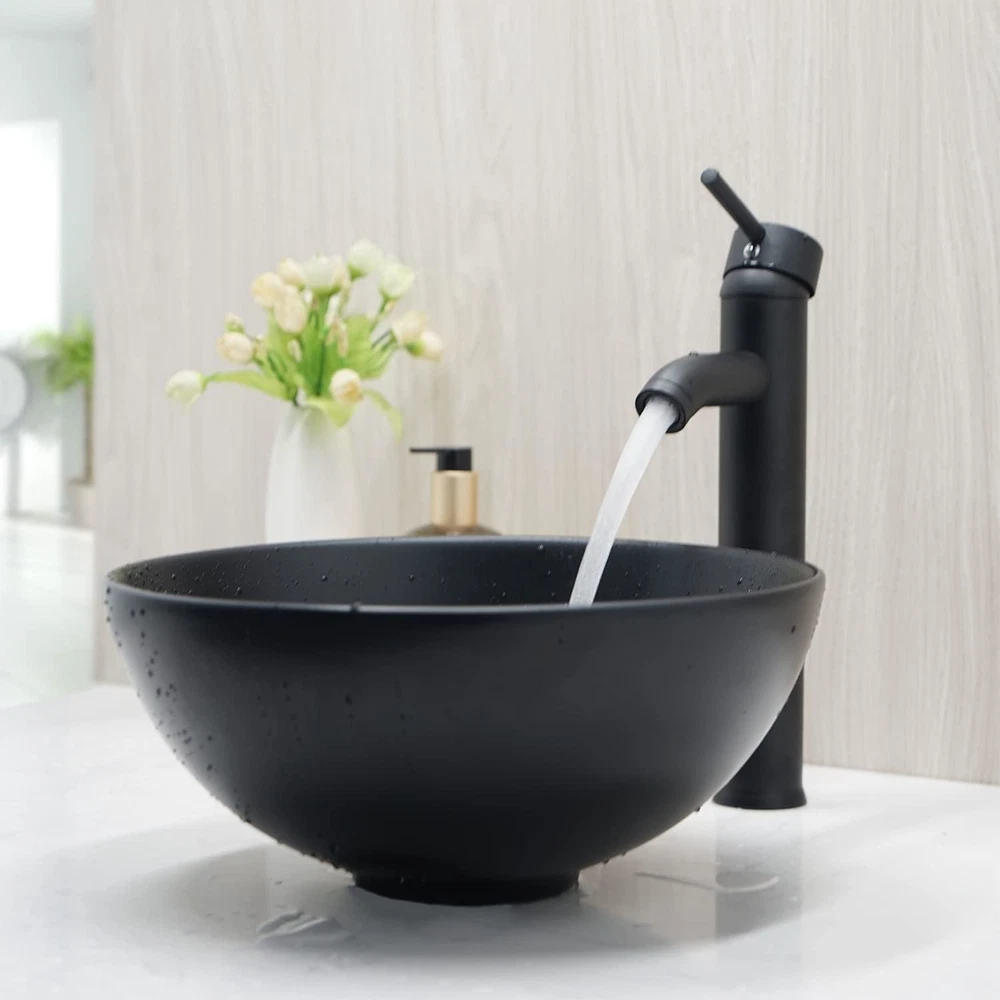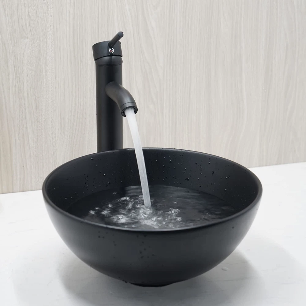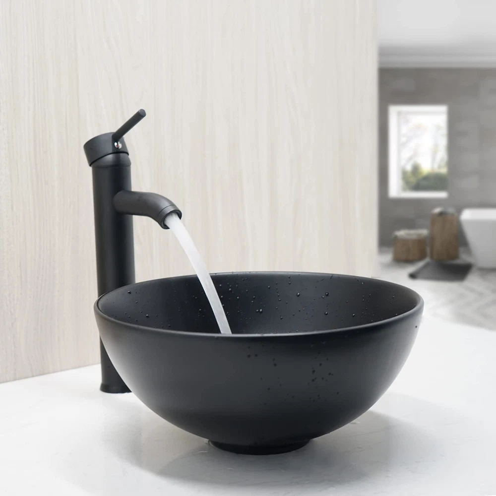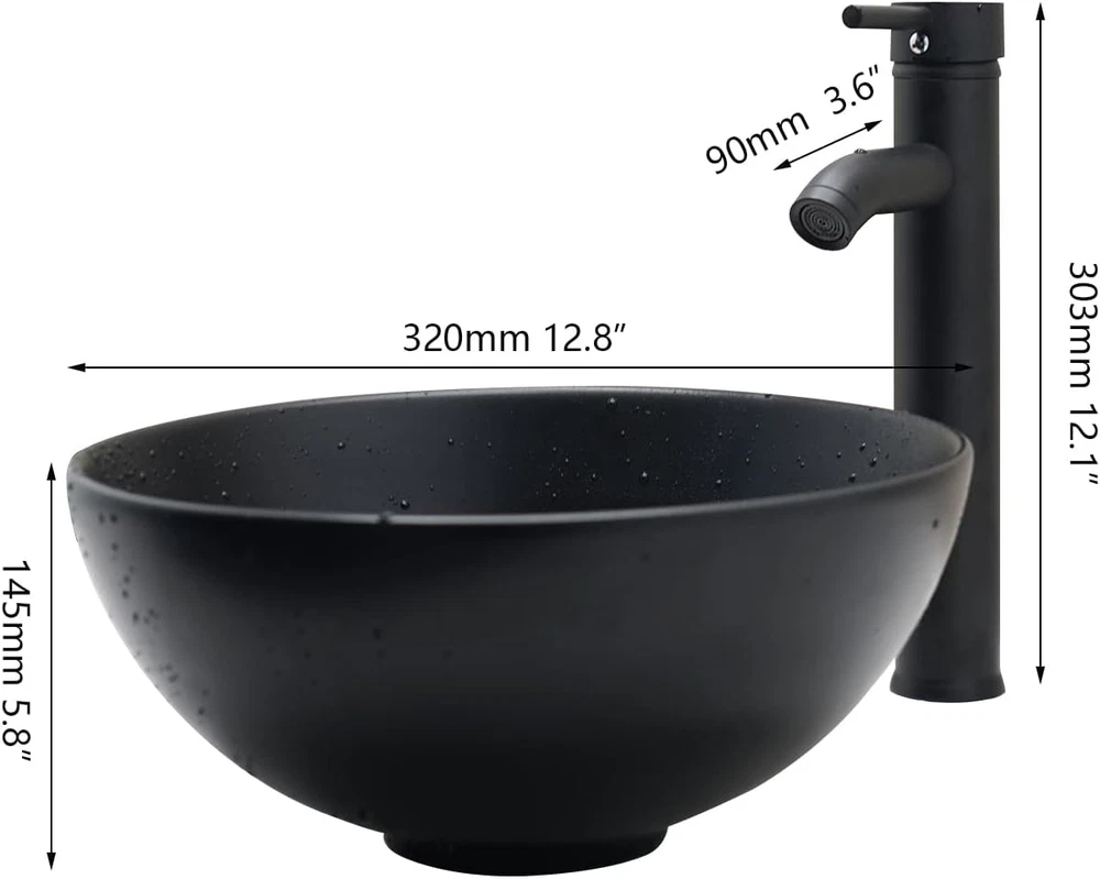Above counter 12.8 inch matte black round bathroom ceramic vessel sink well fit for any room style.. Made of ceramic, the bathroom sink is matte finished. This ceramic sink comes with 12.1 inch matte black mixer faucet and pop-up drain. Easy to install, no need to worry about the hassle during installation. Each vessel sink is packaged in a reinforced cardboard box. It is difficult to control the damage in transit though we have packaged well. If you have any questions, please leave a message at any time. We will reply within 12 hours.