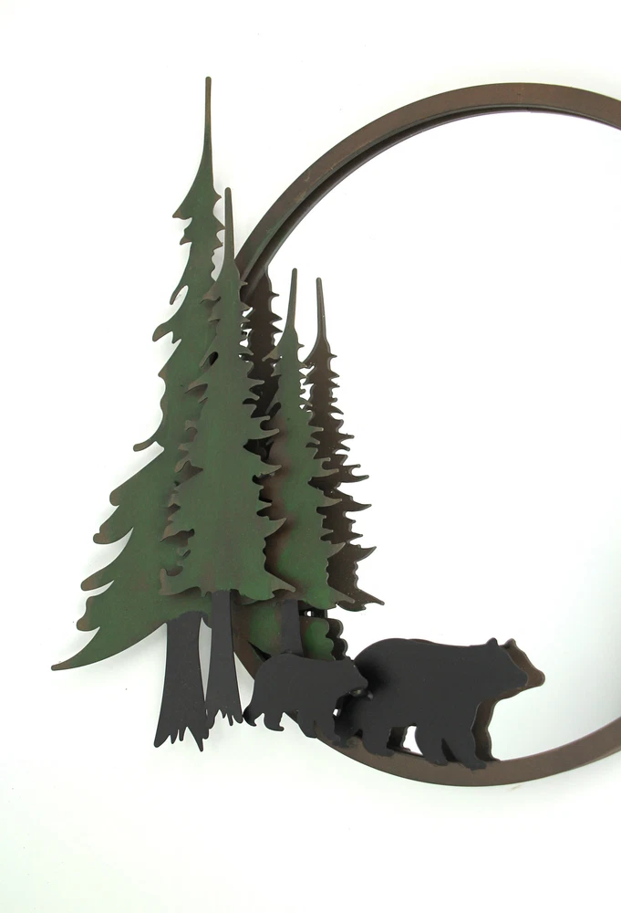 NOTE: DUE TO SCRATCHES AND DENTS IN THE METAL this item is being sold at a reduced price. Please see last photo for damages/defects. Add some reflective forest flair to your home decor with this black bear themed wall hanging vanity mirror. Crafted from high quality metal with laser cut details for a decorative mirror that will last for years. Measuring 22.5 inch long, 1.5 inch wide, 19.75 inch high, with two built-in hangers on the back, this wall mirror is ready for quick and simple mounting for use in any bathroom, bedroom, hallway, living room, or den. A great way to give your home a dash of lodge style or as a gift for forest loving friends and family. Our eBay Store About Us Add to Favorite Sellers Black Bear Forest Wall Mirror Decorative Metal Bathroom Bedroom Lodge Accent NOTE: DUE TO DENTS IN THE METAL this item is being sold at a reduced price. Please see last photo for damages/defects. NOTE - DUE TO DENTS IN THE METAL this item is being sold at a reduced price. Please see last photo for damages/defects. OVERALL SIZE - 22.5 Inch Long, 1.5 Inch Wide, 19.75 Inch High DURABLE MATERIAL - Crafted of High Quality Metal For Years of Maintenance Free Display VERSATILE MIRROR - Great For Your Bathroom, Bedroom, Hallway, or Den DETAILED CUT - Laser Cut Details For A Stunning Wall Sculpture NOTE: DUE TO SCRATCHES AND DENTS IN THE METAL this item is being sold at a reduced price. Please see last photo for damages/defects. Add some reflective forest flair to your home decor with this black bear themed wall hanging vanity mirror. Crafted from high quality metal with laser cut details for a decorative mirror that will last for years. Measuring 22.5 inch long, 1.5 inch wide, 19.75 inch high, with two built-in hangers on the back, this wall mirror is ready for quick and simple mounting for use in any bathroom, bedroom, hallway, living room, or den. A great way to give your home a dash of lodge style or as a gift for forest loving friends and family. Product Details Color Multicolored Height 19.75 Length 22.5 Weight 6.7 LB
