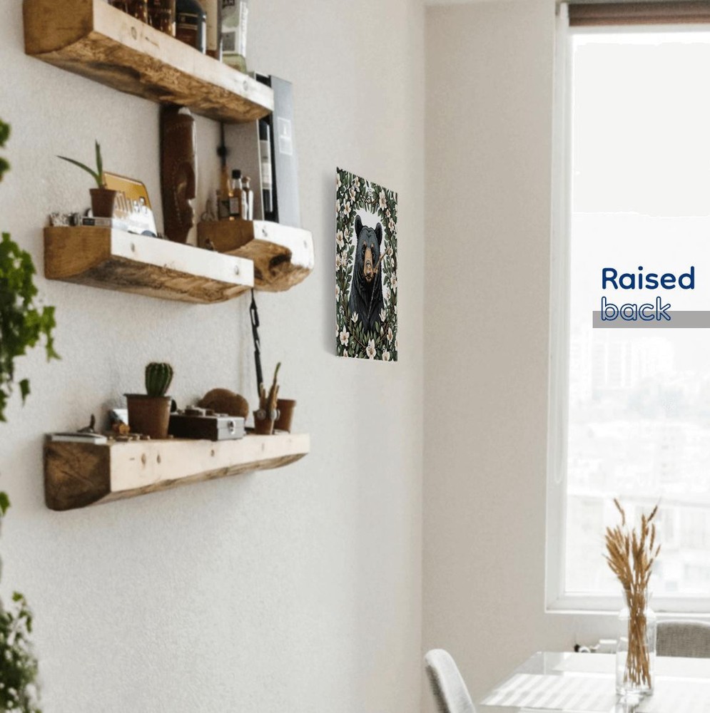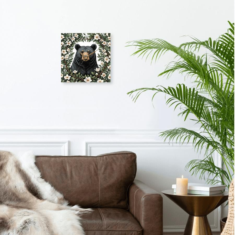 Black Bear Peeking Through Magnolia Flowers Wall Clock by 3dRose