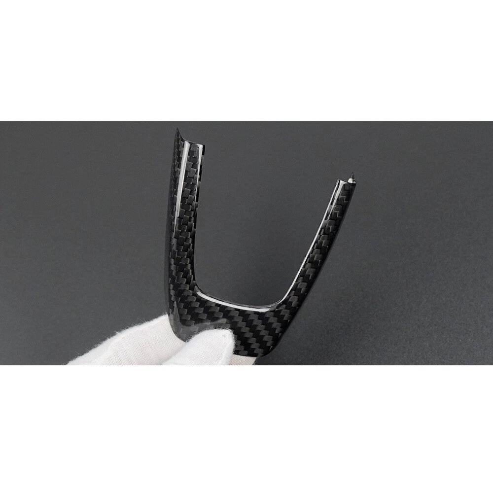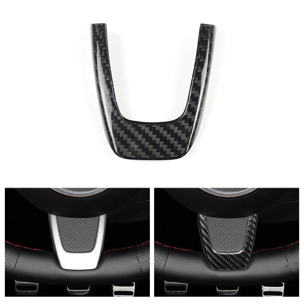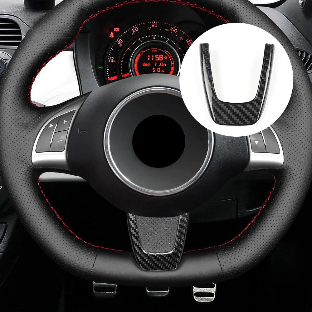 Black Carbon Fiber Steering Wheel Center Cover Trim For Fiat 500 2012 2013-2015
