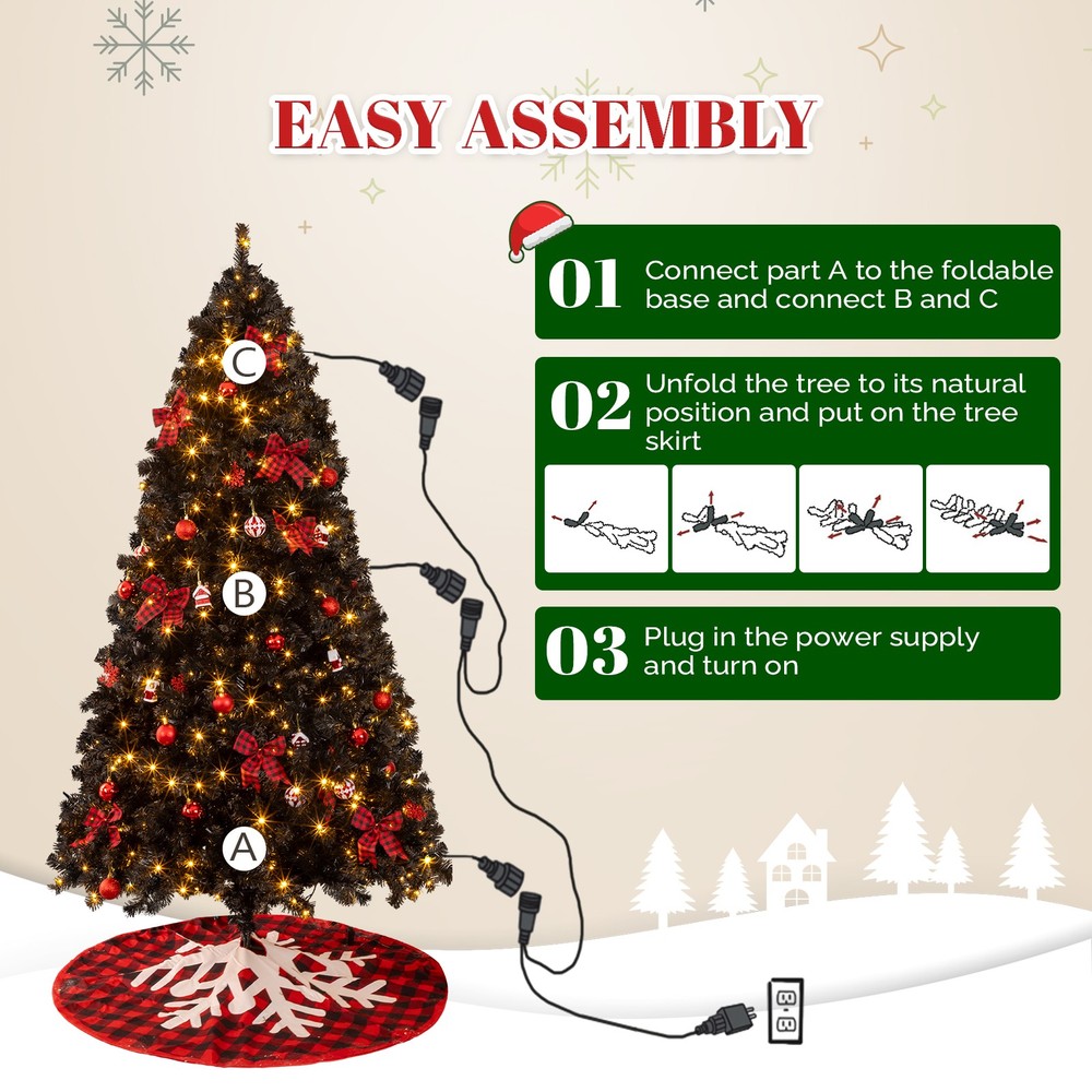 listing template VISIT OUR STORE SIGH UP FOR EMAIL Black Christmas Tree 7.5FT w/ Lights, Skirt, Ornaments In/Outdoor Holiday Decor 7.5 FT Artificial Christmas Tree with DIY 350 Warm White LED Lights, Hinged Xmas Pine Tree with Tree Skirt and Holiday Ornaments for Holiday Party Office Home, Black Tree & Red Decor Intro ductions: Create a magical holiday atmosphere in your home with this stunning Christmas tree. Designed to capture the beauty of the season, this tree brings warmth and joy to any space. With its realistic branches and sparkling lights, it offers a perfect canvas for your festive decorations. Whether you prefer a minimalist look or a lavish display, this tree sets the stage for your holiday celebrations, making it a timeless addition to your home for many seasons to come. Easy to set up and built to last, it's the ideal centerpiece for your holiday décor. Features: 1. Eye Catching Color: The tree's distinct black color adds a unique and modern twist to traditional holiday decorations. This bold color choice not only creates a stunning visual contrast but also enhances the festive atmosphere, making your ornaments pop against the pristine black background. 2. DIY Fairy Lights with 8 Lighting Modes: Unleash your creativity with the versatile string lights that can be effortlessly wrapped around the tree in any shape you desire. Featuring warm white light and 8 dynamic lighting modes, you can easily customize the ambiance to suit your mood or occasion, all with the convenience of the included remote control. 3. Full and Lush Appearance: The tree's abundant branches create a full, dense look that mimics the natural beauty of a real pine tree, making it a stunning centerpiece for your holiday décor. Whether placed in your living room, entryway, or any other space, this tree will captivate your guests and bring the joyous spirit of the season into your home. 4. Built to Last: Crafted from premium quality, flame-retardant PVC, this tree is built to last for many holiday seasons. The sturdy, thick branches are capable of holding your Christmas ornaments, while the reinforced metal stand ensures that your tree remains stable and secure throughout the season. 5. Easy Setup: The hinged branches automatically drop into place, and assembly takes just three simple steps. Once setup, simply fluff the branches for a full, lush look that's ready for your favorite decorations. Then you can decorate the tree with your family using the included ornaments to create a personalized holiday display. Specifications: 1. Overall Height: 7.5 FT 2. Branch Tips: 1200 3. Color: Black 4. Branch Material: PVC 5. Number of LED Lights: 350 6. LED Light Color: Warm White Light 7. LED Light Modes: 8 Modes 8. Ornaments: Red-themed ornaments 9. Tree Skirt: Included Package Includes: 1 x Christmas Tree 1 x Remote Control 1 x Set of ornaments 1 x Tree Skirt 1 x String Lights You might like this more>> Set of 10 Plastic Folding Chairs Wedding Party Event Chair $135.99 Makeup Case Cosmetics Organizer 2 Small & 5 Large $23.65 12-Batten 4 Tier Storage Organizer Shoes Tower $24.59 2PC Patio Rattan Wicker Chair Sofa Patio Garden Furniture $99.99 High Gloss TV Unit Cabinet Stand with LED Lights $132.99 Commercial Heavy Duty Clothing Garment Rolling Collapsible $53.99 Shipping Policy 1. Ship worldwide from New Jersey by reliable shipping companies -- USPS, UPS, FEDEX, DHL, etc., and only to VERIFIED PAYPAL ADDRESS. Transport Delivery ETA. Package handling only takes 1 business day at our warehouse, so please make sure entering correct payment and shipping information before checking out. Once your payment is completed, we are not going to accept any more changes to your order. 2. International Buyers – Please Note: a. Import duties, taxes and charges are not included in the item price or shipping charges. These charges are the buyer's responsibility. b. Please check with your country's customs office to determine what these additional costs will be prior to bidding/buying. 3. Please check your shipping address carefully before checkout, it can't be changed if order completed. 4. Orders placed on weekend will be shipped within 2 days.Notification of shipment with tracking number will be sent to buyers. 5. Standard shipping: 2-7 business days Expedited Shipping: 2-3 business days One-day Shipping: 1 business day International shipping: Varies 6.Ship within 1 business day once payment completed. Notification of shipment with tracking No. will be sent to buyer. 7.We offer discounts for combine shipping. Please contact us first if you need combine shipping, and an invoice with discount will be sent to you. 8.Please allow 5 business days for delivery to US destinations on any eBay orders and 14 business days for delivery to any International destinations. We highly recommend our buyer choose priority/expess mail for international delivery which is much more stable. Return Policies 1. Refunds given only if item DOA and cannot be replaced via PAYPAL . If so, Please contact us with 5 days since you receive the item and and return to us within 30 days from the delivery date for exchange or refund. 2. If you need return, please contact our customer service representative, let us know the detailed problem and send us some pictures for confirmation. Payment Payment should be sent within 8(EIGHT) days of auction closing. Feedback If you are dissatisfied for any reason, please do not be quick to leave negative/neutral feedback. We work hard to make sure EVERY CUSTOMER 100% SATISFIED and resolve any problem for you. Work Time Work Time: Monday to Saturday About Us | Newsletter| Feedback| Contact Us Copyright © 2021 ECMonster. All rights reserved. 无标题文档 Black Christmas Tree 7.5FT w/ Lights, Skirt, Ornaments In/Outdoor Holiday Decor 7.5 FT Artificial Christmas Tree with DIY 350 Warm White LED Lights, Hinged Xmas Pine Tree with Tree Skirt and Holiday Ornaments for Holiday Party Office Home, Black Tree & Red Decor Intro duction