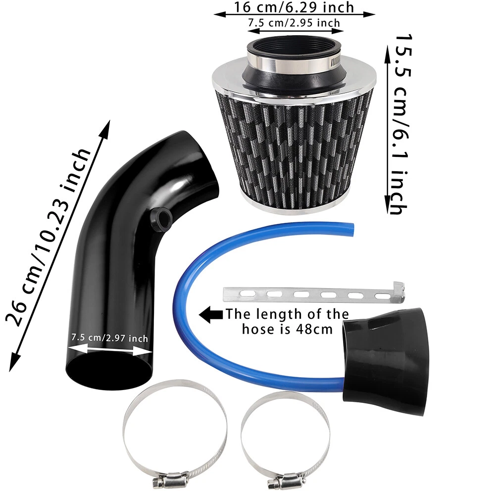 Please note: Not suitable for cars with air flow meters Not suitable for cars with MAF sensors Product Description Features: 100% brand new and high quality Excellent quality and attractive design Improve the power & increasing torsion power Made for universal car. Install easily and economical Adopt excellent the aluminum alloy material Filter Features: High air flow with excellent filtration. Designed to increase horsepower and acceleration. Washable and reusable. Will not void vehicle warranty. Lasts up to 50000 KM before cleaning is required depending on driving conditions. Economical, a stainless air filter will last the life of your automobile. Easy high performance add-on. Environmentally friendly. Specifications: Material: Aluminum Alloy Color: Red Pipe Size: 7.5x26cm/2.97"x10.24" (ODxL) Length of the tube hose: 48cm Length of the mounting bracket: 16cm/6.29" Quantity: 1 Set Note: Please allow 1-3mm error due to manual measurement. pls make sure you do not mind before you bid. Due to the difference between different monitors, the picture may not reflect the actual color of the item. Thank you! Package Contents: 1 x Car Cold Air Intake Pipe 1 x Silicone Joiner 2 x Hose Clamp 1 x Tiub Hose 1 x Mounting Bracket On Feb 1, 2024 at 07:10:33 PST, seller added the following information: On Jan 12, 2025 at 17:48:50 PST, seller added the following information: