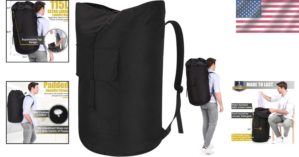 Black College Laundry Backpack, 115L Capacity, Padded Straps ‹ › ‹ › ‹ › ‹ › ‹ › ‹ › ‹ › ‹ › Black College Laundry Backpack 115L Capacity - Padded Straps Product Features: Soft Padded Shoulder Straps: Enjoy the comfort of our backpack-style laundry bag, designed to make your laundry experience easier and more convenient. Extra Large Heavy Duty: Measures 28" H x 15" L, and can be extended up to 40" H with a capacity of up to 115L, making it significantly bigger than typical laundry bags. Material: Crafted from sturdy, lightweight 600D tearing-resisting oxford fabric, ensuring durability while remaining easy to carry. Multi-Purpose: Ideal for transporting laundry in dorms or apartments, and can also serve as storage for blankets and toys. Convenient Design: Features a front pocket (15" H x 11.2" L) for laundry detergent and accessories, and a drawstring closure with a buckle to keep your belongings secure. Benefits: Hands-free carrying makes transporting laundry a breeze. The adjustable straps accommodate different body sizes for a tailored fit. An expandable wide opening ensures effortless loading and unloading. Convenient for indoor use and adaptable for outdoor activities such as hiking or camping. The collapsible design allows for easy storage when not in use. Why Choose Our College Laundry Backpack? Say goodbye to heavy, cumbersome laundry baskets and hello to convenience and style! This multifunctional laundry backpack combines the practicality of a traditional laundry bag with the ease of a backpack. The padded shoulder straps provide comfort during your journey to the laundry room or anywhere else you need to go. With an impressive 115L capacity, you won’t need to worry about making multiple trips! Perfect for students, families, or busy individuals, our laundry bag is an essential addition to any laundry day routine. It's ultra-durable, easy to clean, and designed to keep your belongings organized and secure. Make laundry day enjoyable, and elevate your experience with our Black College Laundry Backpack. Order yours today and transform the way you tackle laundry! Shipping Free & Fast Shipping - We offer free shipping to most of the USA with a normal delivery time of 3-10 business days. However, due to various situations, additional delivery time (up to 3 weeks) may be required for some items. Alternative Carriers - We may use alternative carriers (e.g. USPS, FedEx, UPS, etc.) to ensure your package arrives safely and on time. Due to the use of multiple carriers, we are unable to provide a tracking number automatically. Handling Time - Orders are processed and shipped within 1-5 business days of receiving cleared payment. Shipping Restrictions - Shipping to Alaska, Hawaii, Puerto Rico, Guam, and other US territories may incur shipping charges or delivery restrictions. Please contact us before ordering, or your order can be refunded/cancelled. State Restrictions - There may be restrictions based on your state of purchase. For example, certain items may not be shipped to California due to state regulations. Contact for Tracking Updates - If you require tracking updates or have any concerns about the delivery of your order, please feel free to contact us, and we will be happy to assist you. Return 30-Day Hassle-Free Returns - We want you to be completely satisfied with your purchase. If you are not, you can return the item within 30 days of receiving it for a full refund or exchange. Easy Return Process - To start a return, simply contact us and we will provide you with a prepaid return shipping label and detailed instructions. Restocking Fee - There are no restocking fees for returns. However, the buyer is responsible for return shipping costs if the return is not due to a seller's error. Refund Processing Time - Refunds will be processed within 5 business days of receiving the returned item in its condition. Payment We accept all major credit cards, PayPal, and Apple Pay for your convenience. Your payment information is secure and encrypted to ensure a safe and seamless transaction. Please complete your payment within 3 days of purchase to avoid any delays in shipping. Feedback Your feedback is extremely important to us. We strive to provide the best products and customer service possible. If you are satisfied with your purchase, please take a moment to leave us a positive review. If you have any concerns or issues with your order, please contact us before leaving negative feedback. We are committed to resolving any problems and ensuring your satisfaction. Contact Us If you have any questions or concerns, please feel free to out to our customer support team. You can contact us through the eBay messaging system. We are available Monday to Friday, 9:00 am to 5:00 pm EST, and we will do our best to respond to your inquiry within 24 hours. Buy it now and enjoy a pleasant shopping experience! Capacity: 115L Style: Backpack Unit Quantity: 1 Features: Adjustable,Heavy Duty,Extra Large,Portable,Soft Padded Shoulder Straps,Cushioned Comfort,Adjustable Straps,Reinforced Stitching,Expandable Design,Drawstring Closure,Collapsible,Hanging Loop Mounting: Free Standing,Hanging Type: Laundry Bag Material: Oxford Size: Large Color: Black Shape: Cylindrical Item Weight: 1 lbs