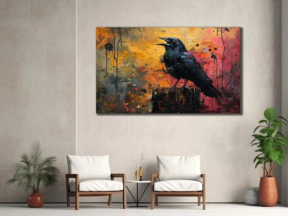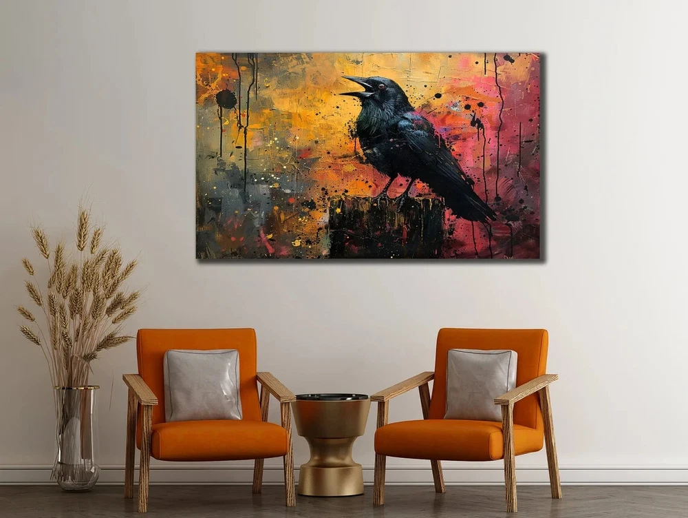 Black Crow Abstract Colorful Painting Unframed Canvas Print Australian Wall Art