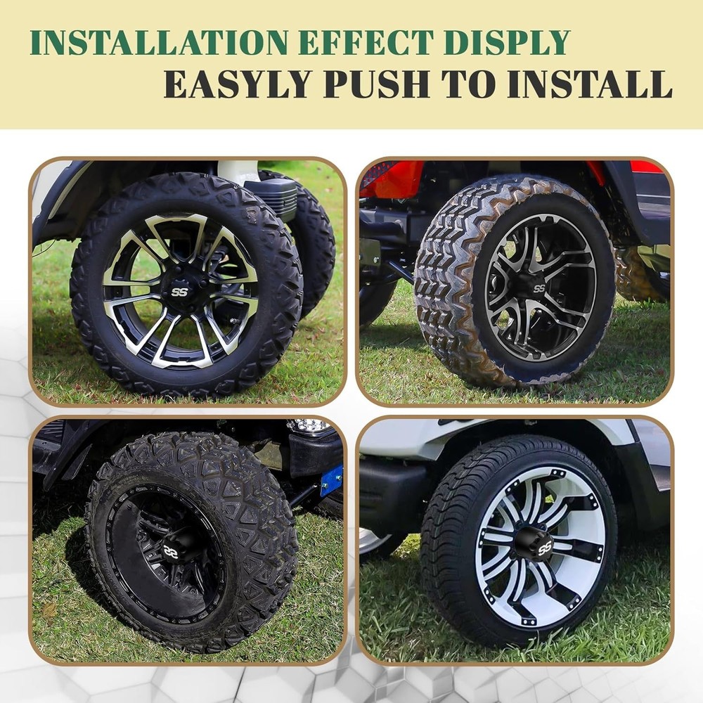 These hub caps are a game-changer for my golf cart! Super easy to snap on—no tools needed—and they instantly gave my ride a sleek, upgraded look. The fit was perfect for my EZGO, and bending the clips first made installation a breeze. Highly recommend for a quick style boost!