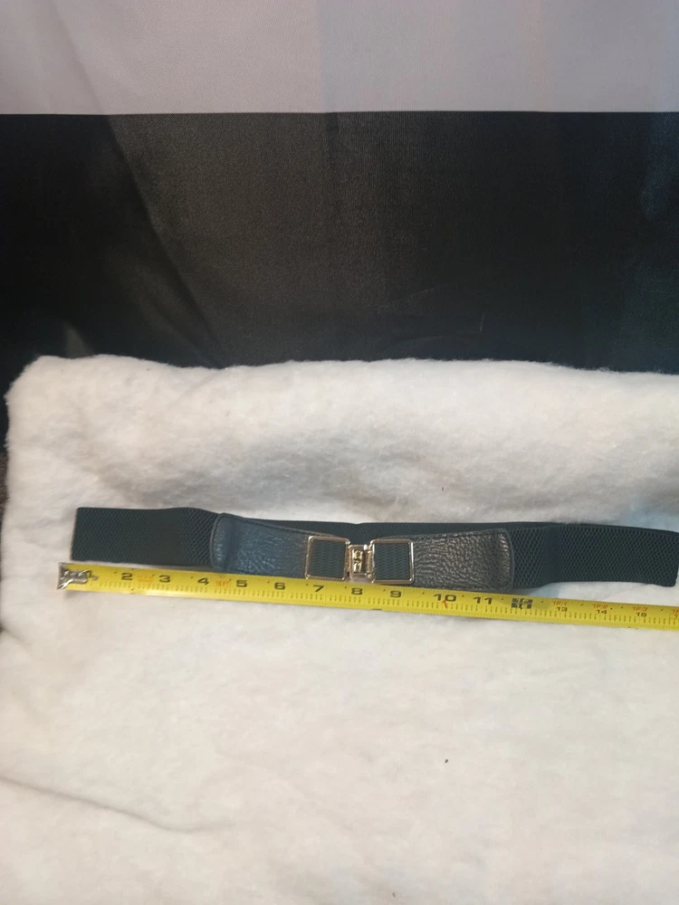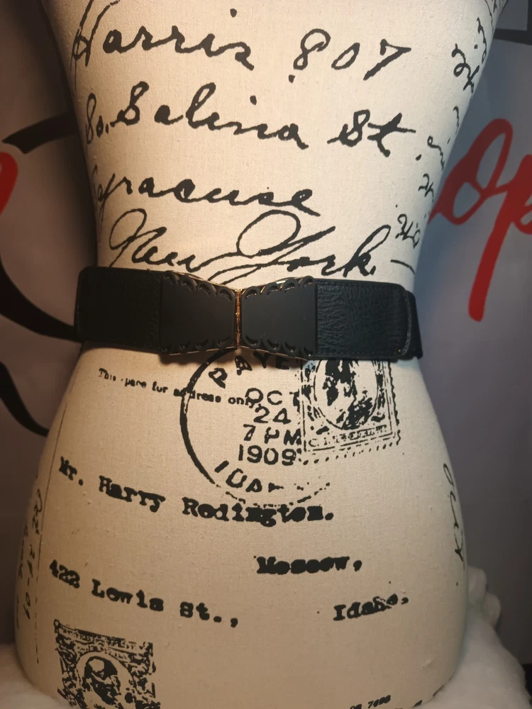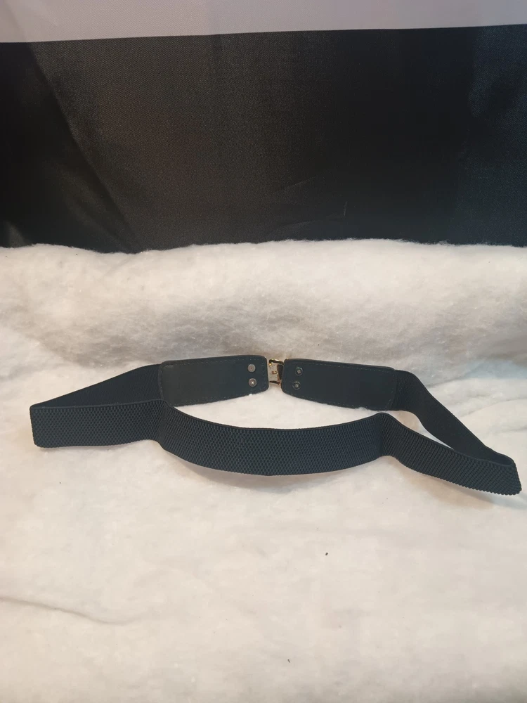 Black with under gold tone embellishment, 1 1/2" elastic, 4" faux leather
