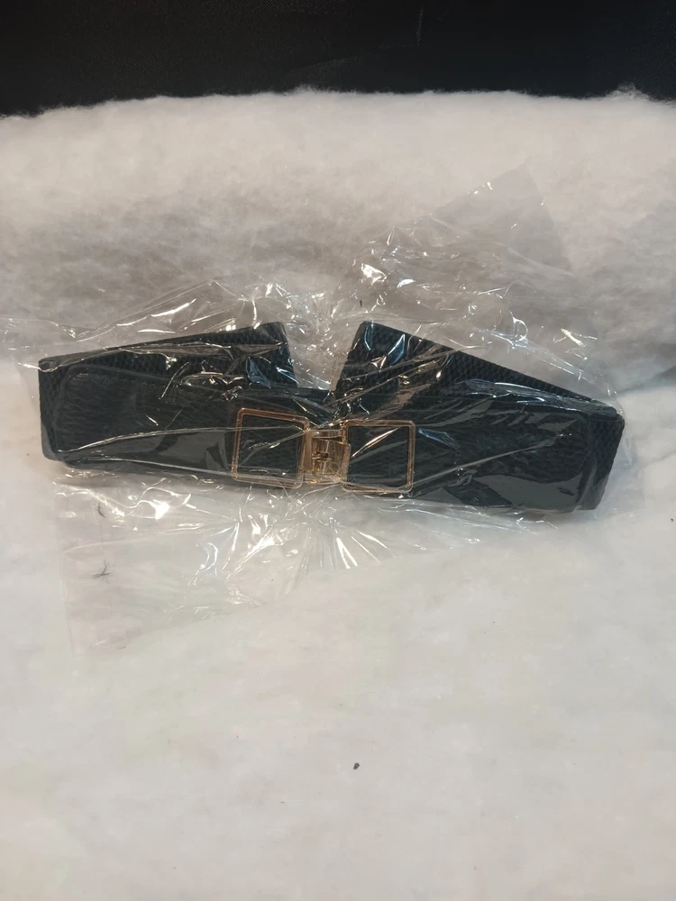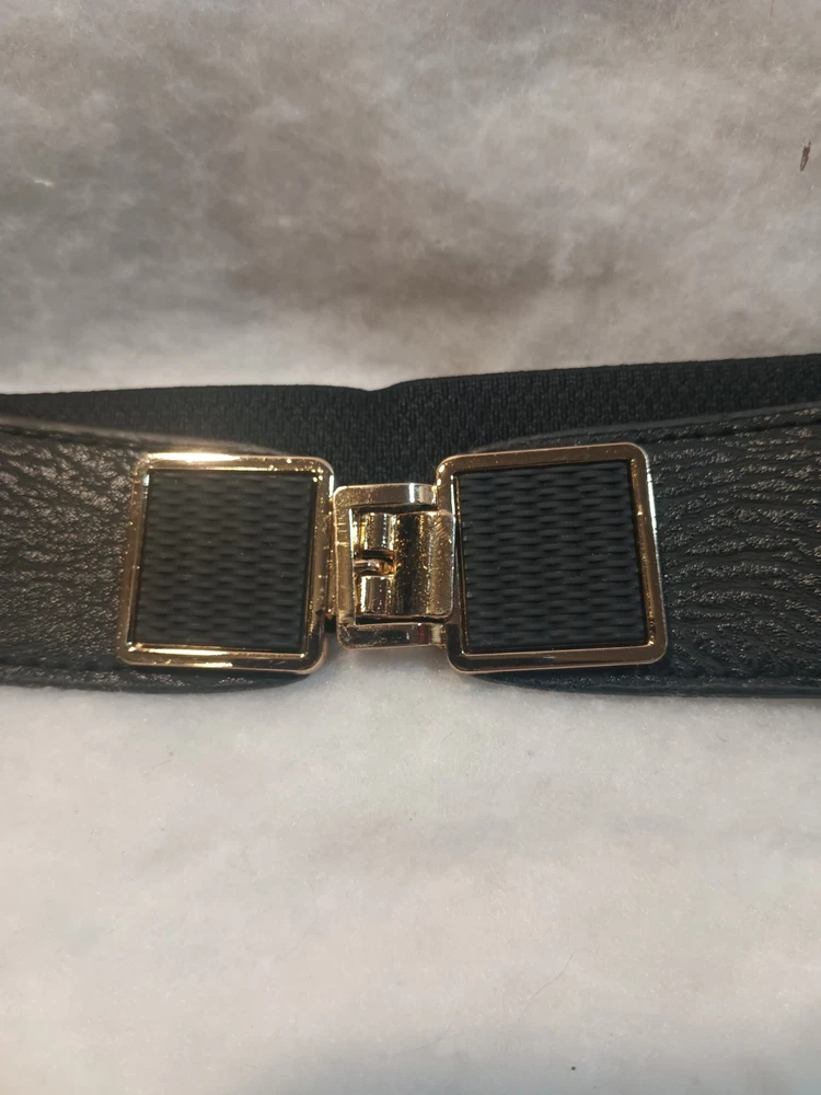 Black Faux Leather And Electric Waistband Gold Tone Embellishment