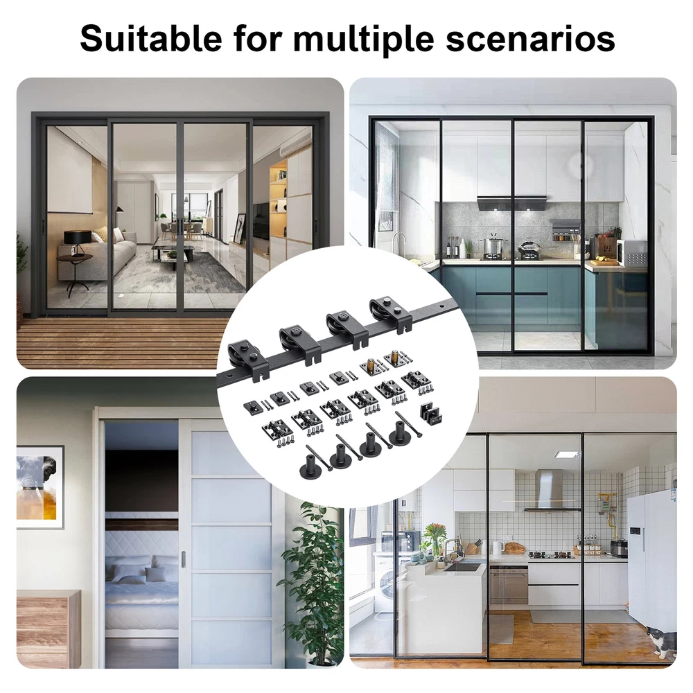Black Folding Sliding Barn Door Guide Rail Set Carbon Steel Hardware Track Kit Color: Black Material: Carbon steel Track size: 64 inches (162CM) Track splicing method: 4 Scope of application: door thickness 0.5-50MM 4x FT orbit 4x roller 4x roller rotating bracket 2x roller holder 6x hinge 2x ground guide fastener 2x seal strip 1x screw bag 1x Specification 5x tube clamp 35mm 5xm8*90 wood teeth screws We only accept Paypal . Payment is expected within 2 days from the end of the auction. We send all the items are based on your paypal address. Therefore, please make sure your paypal address is valid. * International Buyers Please Note: Import duties, taxes and charges are not included in the item price or shipping charges. These charges are the buyer’s responsibility. Please check your country’s custom office to determine whether these additional costs will be prior to bidding / buying. We only ship this item to United State! We ship to your eBay address. Each package will be shipped to USA by UPS or Fedex with tracking number. Please check your shipping address carefully before checkout, it can't be changed if order completed. Ship within 1-2 business day once payment completed. Orders placed on weekend will be shipped within 3 days. Seriously promise: Refund or resend will be offered if item still not arrive in 7-10 business days. Just send us an email ,we will give you a satisfied solution as soon as possible. We maintain high standards of excellence FIVE STAR and strive for 100% customer satisfaction! Positive Feedback is very important to us. We hope that you contact us immediately BEFORE you give us neutral or negative feedback, so that we can satisfactorily address your concerns. We promise to offer the lowest price and high quality produce. Our working time: From Monday to Friday(9:00 am to 18:00pm), we do not work on holidays in China,hope you can understand and know that , thank you. Please always talk to us via ebay Message. We appreciate your business and look forward to growing our e-Bay sales with satisfied customers. If you dissatisfied for any reason, Please don't leave negative or neutral feedback at once. We work hard to make sure EVERY CUSTOMER 100% SATISFIED and resolve any problem for you and always leave positive feedback for all our customers. If you are satisfied with the product you received ,please leave us positive feedback and 5 scores DSR. Dear buyers,Welcome to our store!Your satisfaction is our top goal,we appreciate your business. If you have any questions, please feel free to contact with us by ebay Message during our business hours ( 9:30a.m. to 5:30 p.m.), or email us through eBay, we will try our best to help you to resolve it. If you are satisfied with our service, please rate the details of the transaction (Detailed Seller Ratings) on eBay and We will do the same for you. If you are not satisfied with the product or service ,please contact us before leave negative or natural feedback, we will try our best to solve the issue to your satisfaction, thanks. For any presale or after-sale questions,please do feel free to email us! Due to the time difference, each email will be replied within 1 working day,and weekend will be delayed a bitThanks for your patronizing!