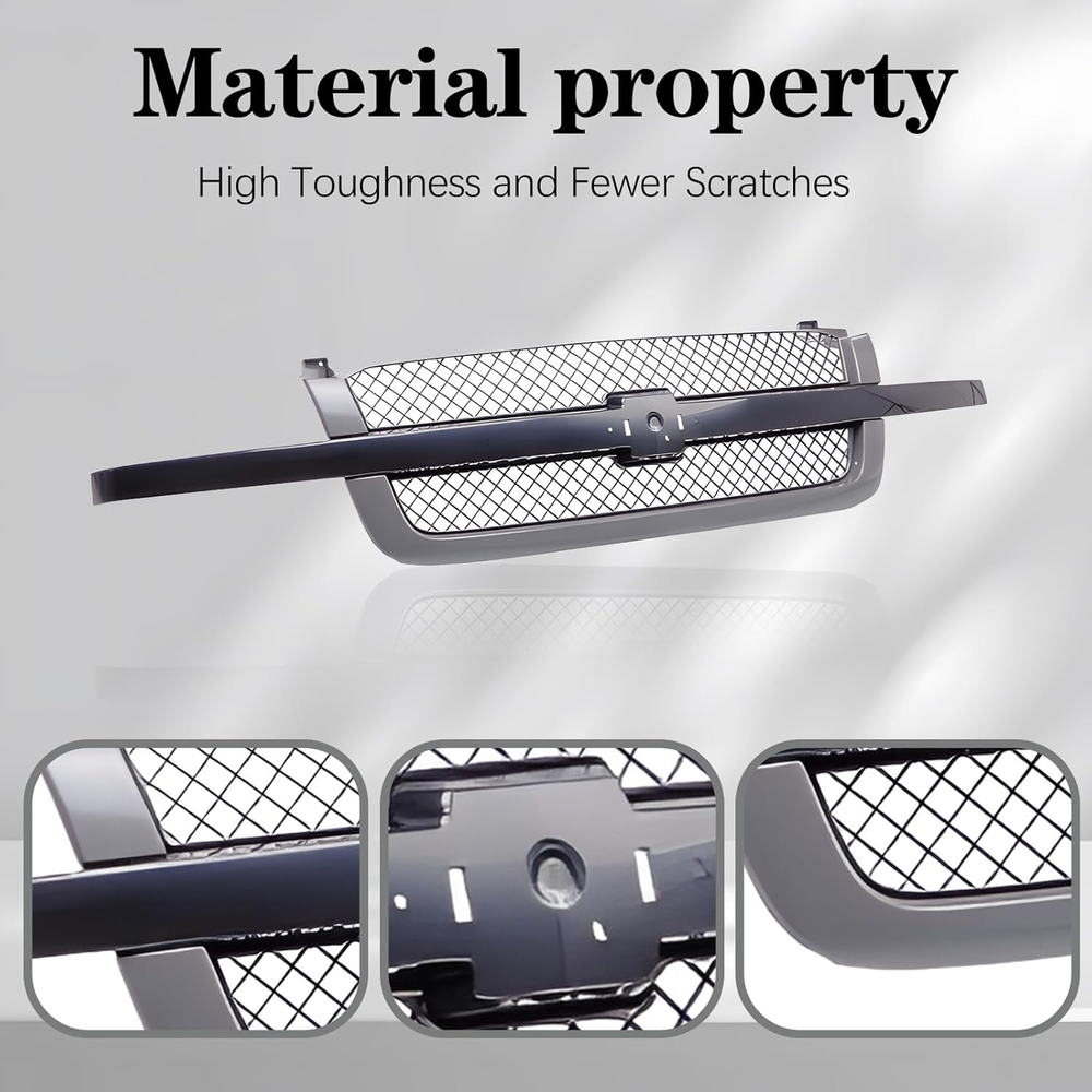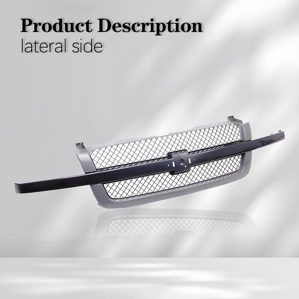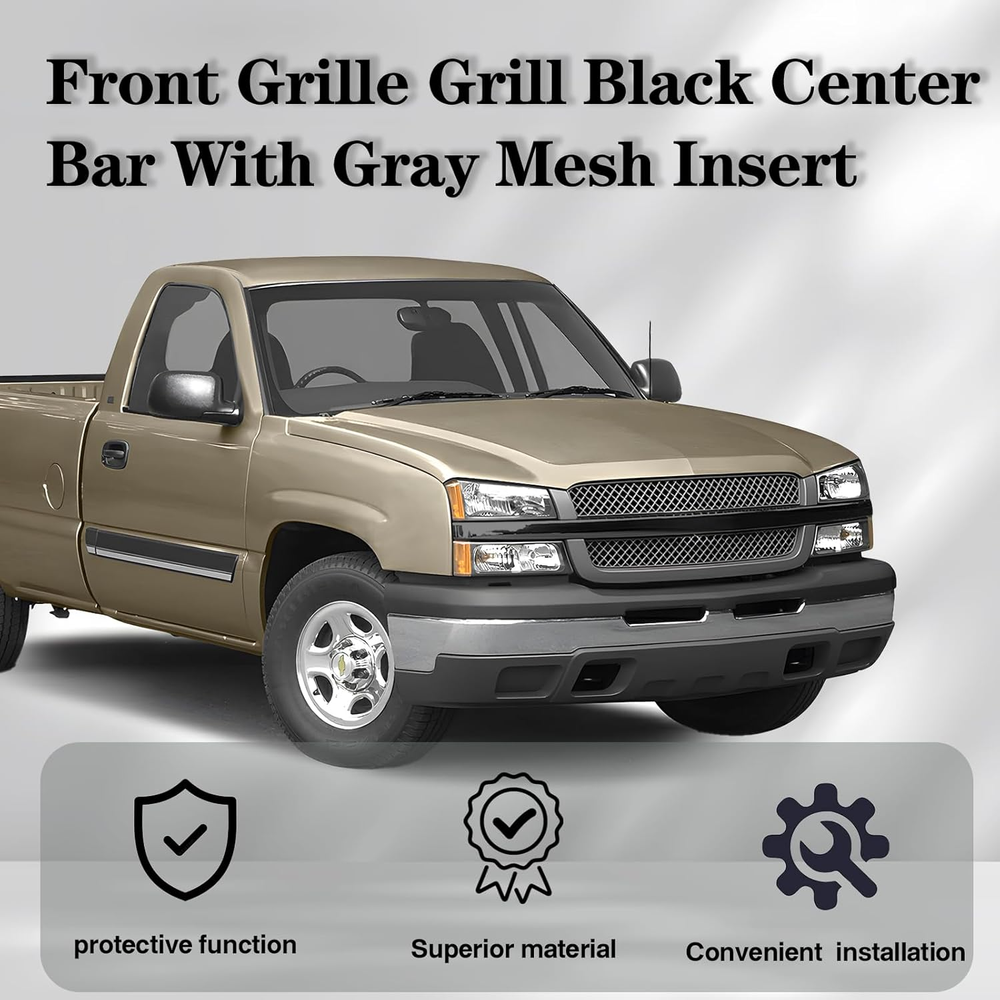1. This grille upgrade is a perfect fit for my Silverado! The black center bar and gray mesh insert give it a sleek, aggressive look. Installation was straightforward—just popped it in like OEM. The plastic feels sturdy, and the finish matches perfectly. No complaints at all, definitely worth the money for that factory-style upgrade. Highly recommend!