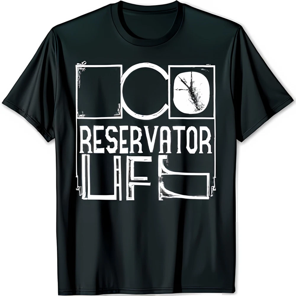 Black Graphic T-Shirt with Abstract Design O in Center RESERVATOR LIFE