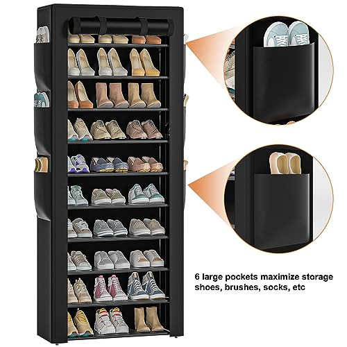 Return Policy Fast Delivery Trusted seller Large Shoe Rack, Black, 6 Side Pockets, 23.6" Wide x 11.4" Deep x 68.9" Tall, 36-41 Pairs of Shoes Product Description Large storage capacity tall shoe rack: This 10 tier shoe rack black with 6 large side pockets offers lots of storage room, 23.6" wide x 11.4" deep x 68.9" tall,can hold 36-41pairs of shoes. An satisfying entryway shoe storage organizer for storing three- four pairs of shoes on each shelf. Practical shoe rack organizer: Different footwear types, footwear such as sneakers, sandals, slippers, flip-flops and pumps; high heels; short boots. This tall shoe rack organizer ensure organize your shoes neatly and do not leave them to clutter your space or become an eyesore. Also you can quickly choose the ideal shoes. Aesthetic look: This black shoe rack is built of powder-coated smooth black iron pipes and high-quality plastic joints with a beautiful dustproof cover, looking nice. Metal shoe rack closet is in a minimalist style for any room as a sight. Keep your room clean and decor your room, eveb spare some much space. Dustproof and long term: Big shoe rack storage organizer is with a dustpoof cover. Roll up the cover, shoes are in sight and put down the cover to effectively protect shoes from dust. Dust-protect your precious footwear. Space-saving shoe rack cabinet: This compact shoe organizer for closet small space do the same job, have a smaller footprint and worthy a lot! Very useful and versatile organizational shoe holder based on maximizing the storage room by taller tiers and larger and more pockets, do double duty on storage and saving-space. Sturdy shoe rack tall: The shoe shelf for closet prolongs the life service of free standing shoe racks for closet. High load capacity and superbly constructed closet shoe organizer for entryway is sturdier and stiffer than others. Anyw: This shoe stand can be placed anyw, living room, front door, hallway, garage, dressing room, apartment, or area that accumulates excess shoes. The closet shoe storage rack is not only for shoes, but also for toys, bags, boxes. Shoe organizer for closet floor makes organization and storage easier. We can store so many items neatly without taking up too much precious space. Shipping Returns Payment Shipping Shipping is FREE to all addresses other than APO/PO boxes in the lower 48 states. All our stock ships from US-based warehouses. Shipped via USPS or UPS (depending on location and package weight) Unless stated otherwise, all orders will ship within 24-72 hours of your payment being processed. Check our feedback to see the great reviews of FAST shipping we offer. Returns Seller does not accept returns Payment We currently accept payment via eBay managed payments only. Once payment is cleared, we will dispatch your shipment within 1-3 business days. Please refer to the "Shipping" tab for more information regarding shipping speed to your destination.
