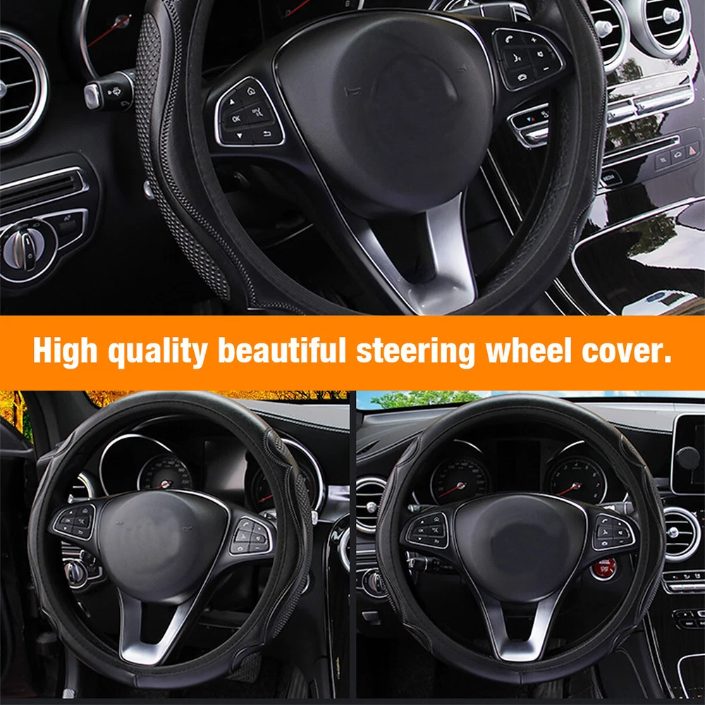 Black Leather Car Steering Wheel Cover Breathable Anti-slip Car Accessories US