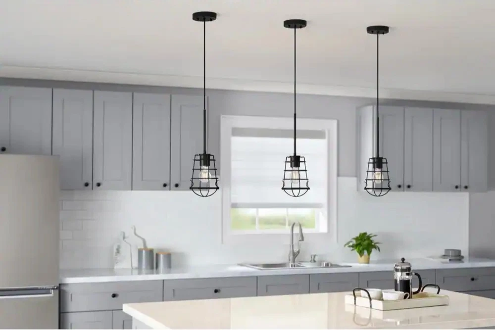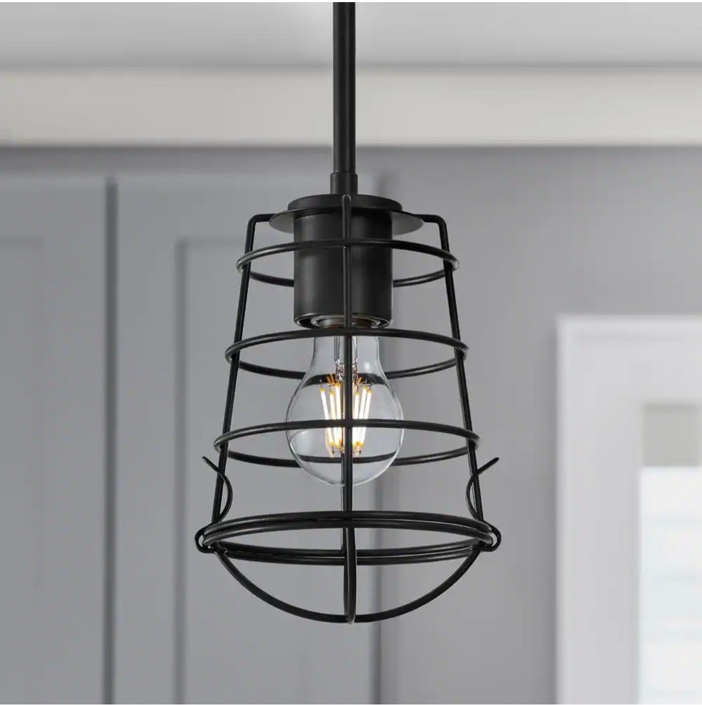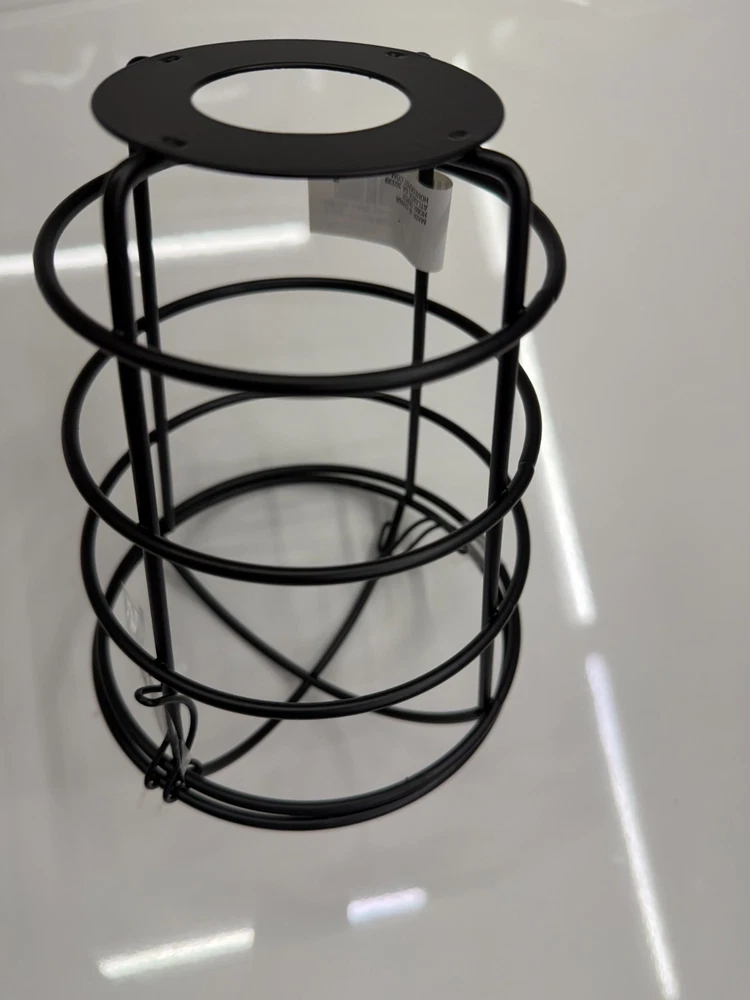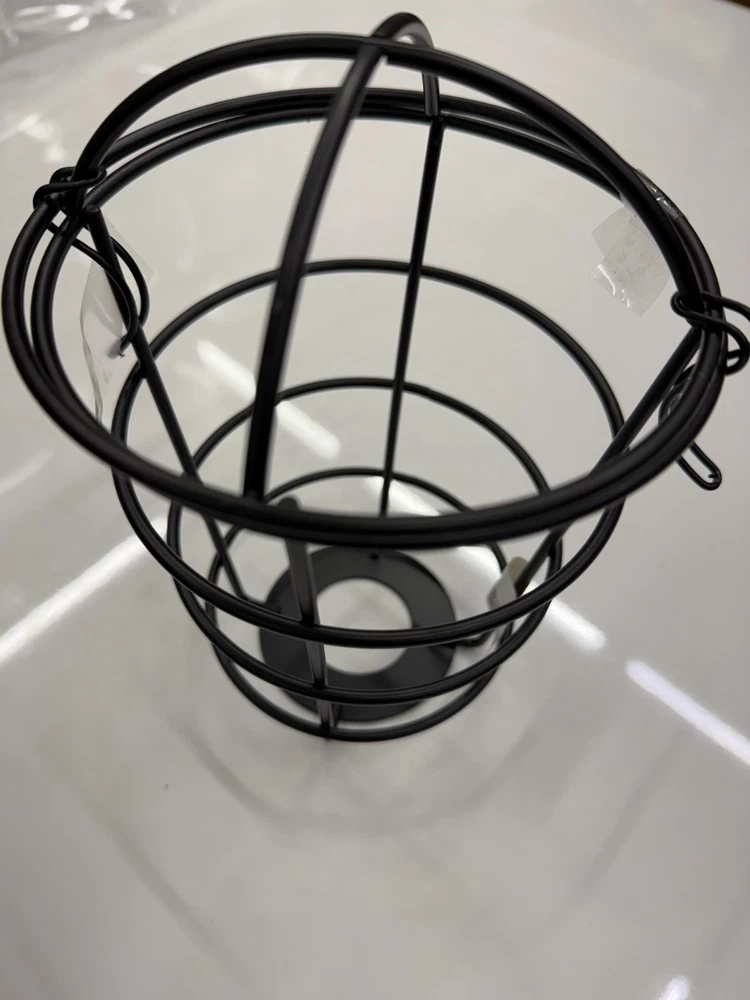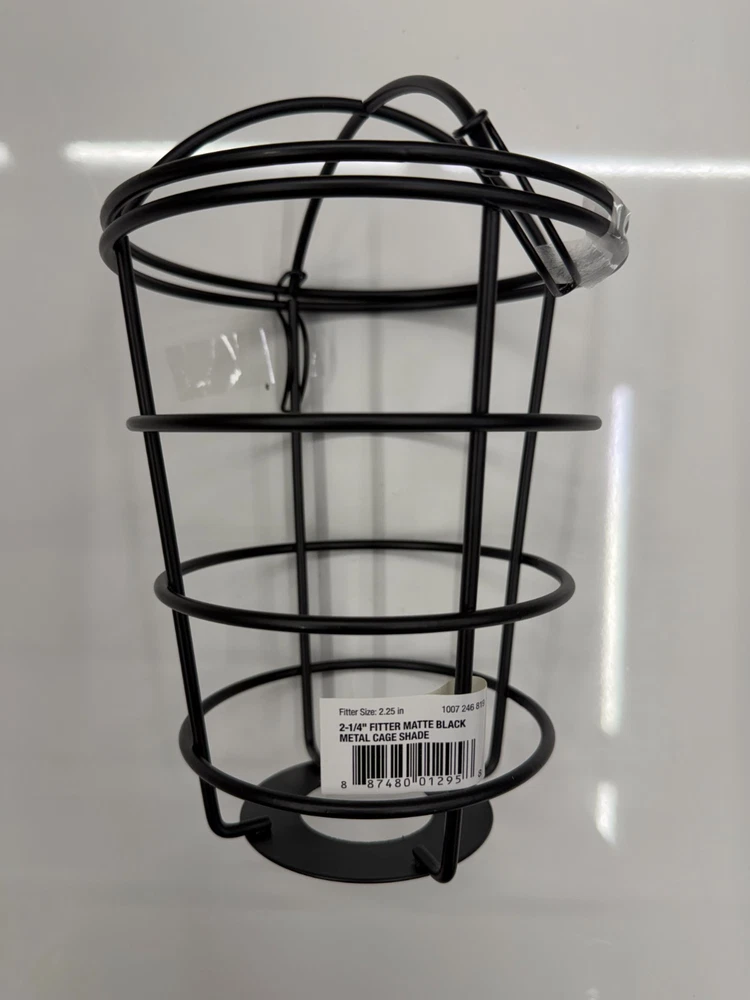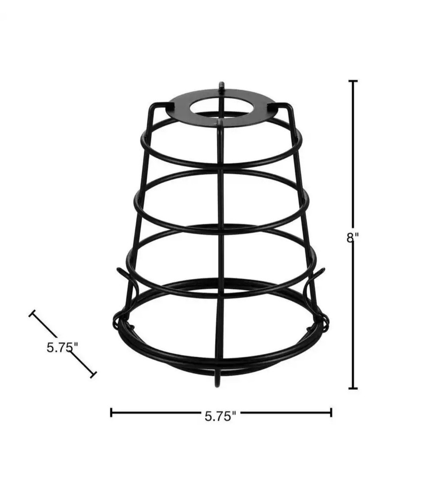 The Black Metal Cage Pendant Shade by H & H is a stylish and durable bulb holder designed with a 2-1/4 inch fitter for easy installation. This shade features a sleek black color and measures approximately 5.98 inches in diameter and 8.03 inches in height, making it a versatile and elegant choice for any lighting fixture. Whether used for residential or commercial purposes, this pendant shade adds a touch of sophistication to any room while providing a functional lighting solution.