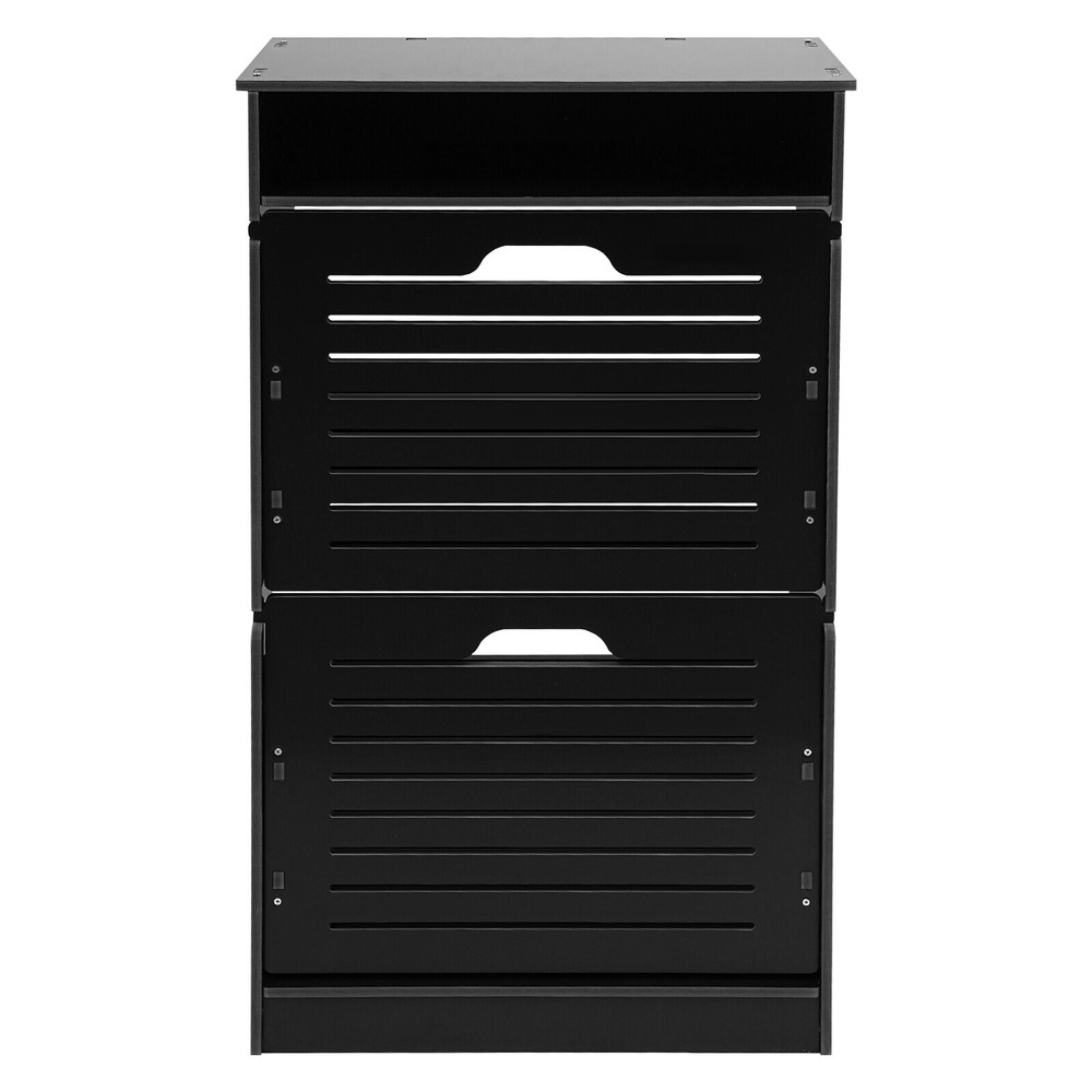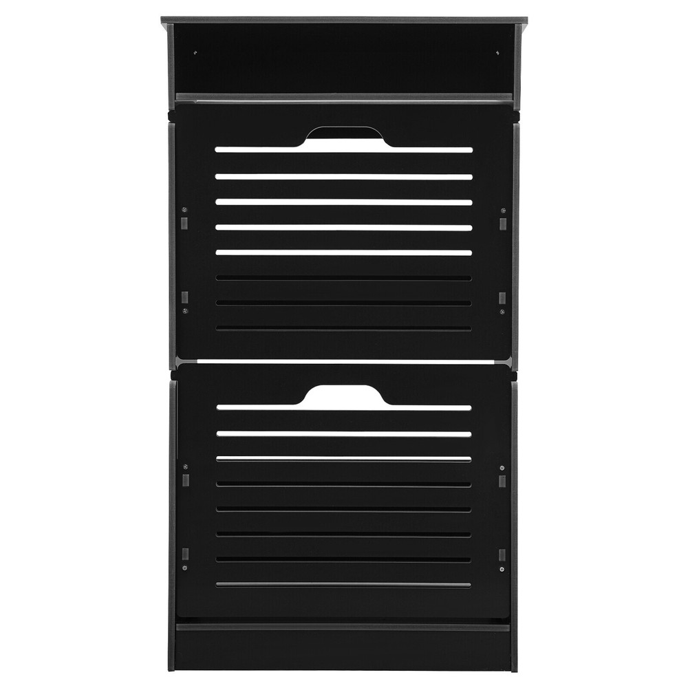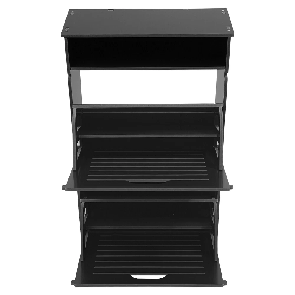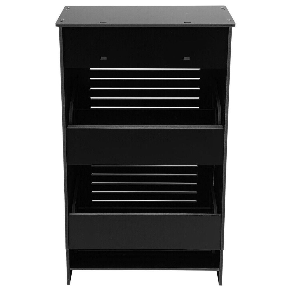 This shoe storage cabinet is a game-changer for small spaces! The sleek black design fits perfectly in my entryway without looking bulky. It holds 8 pairs securely, and the flip-down doors make grabbing shoes super easy. Assembly was straightforward, and the PVC material feels sturdy—no wobbling even when fully loaded. Love that it hides clutter while keeping everything within reach. Perfect for sneakers, flats, or small boots. Highly recommend for anyone needing smart, stylish storage!