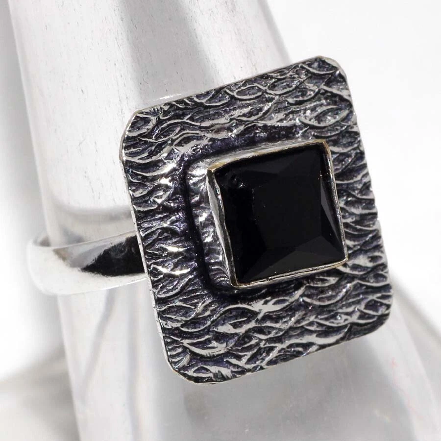 Black Onyx 925 Silver Plated Gemstone Ring US 9 Independence Day Sale JW