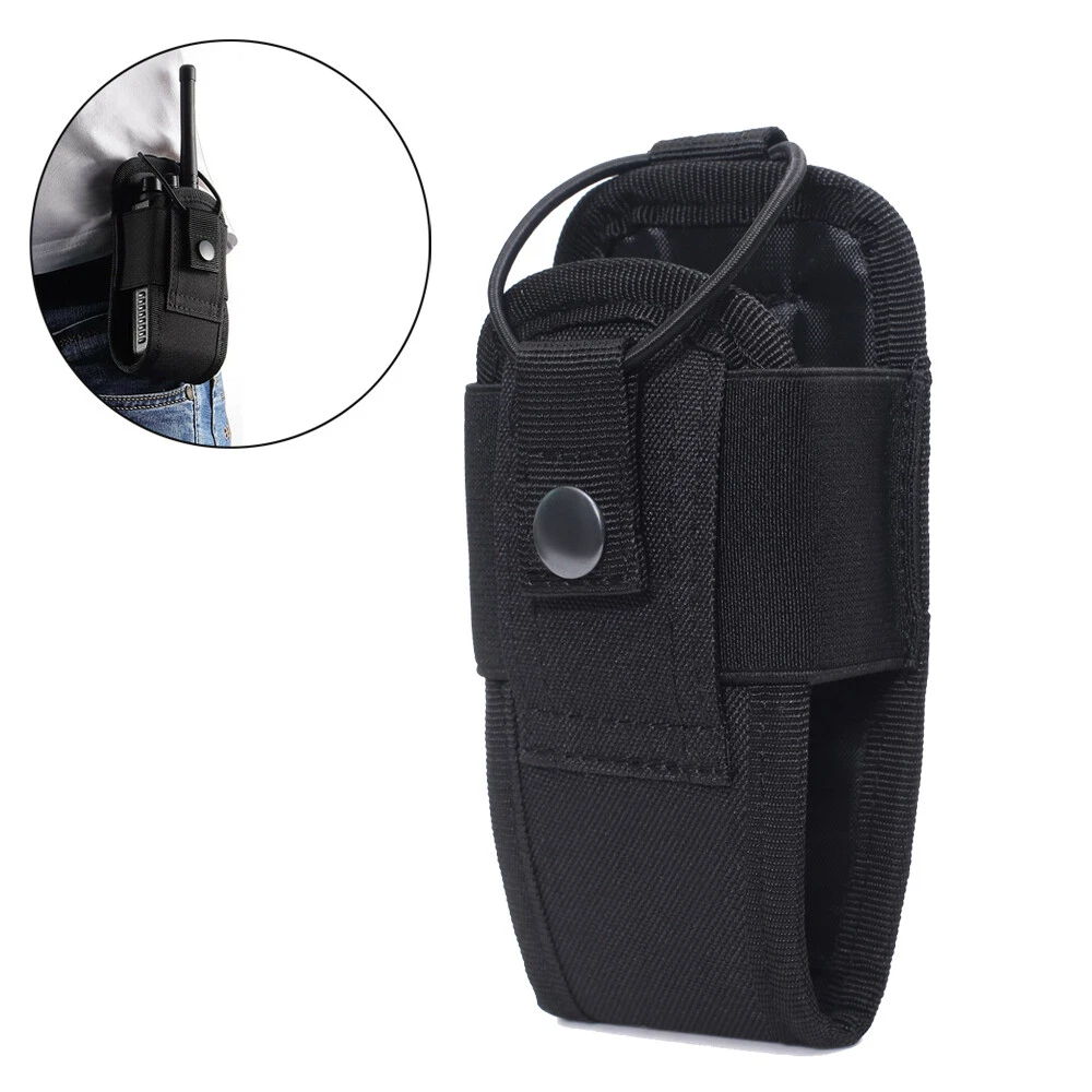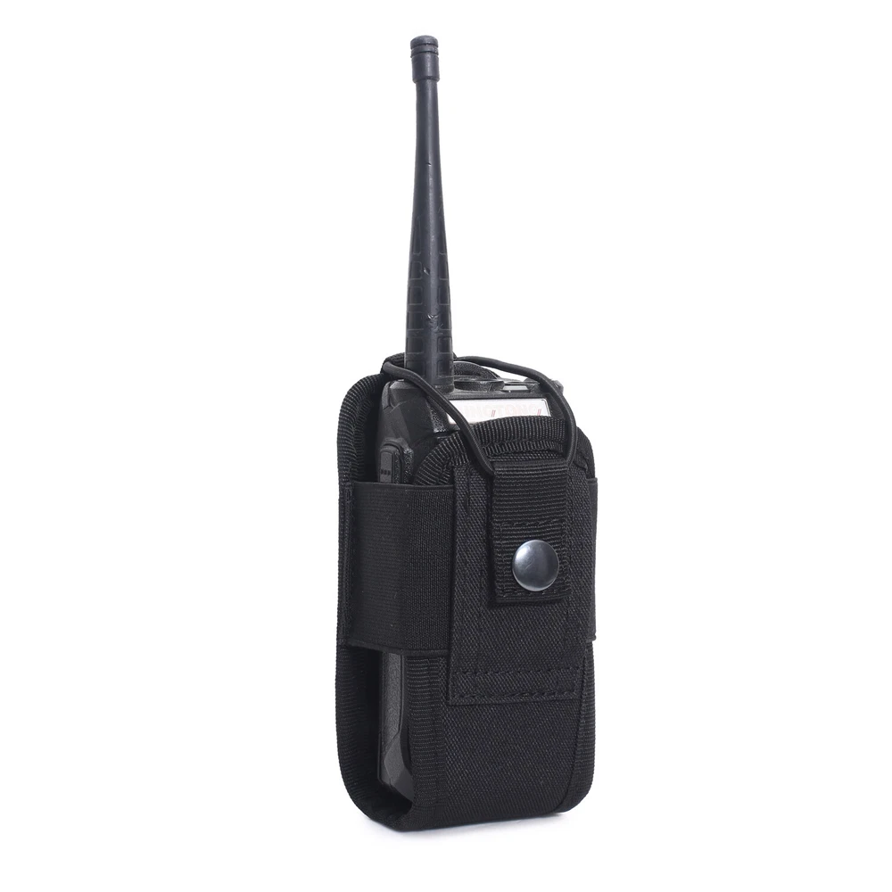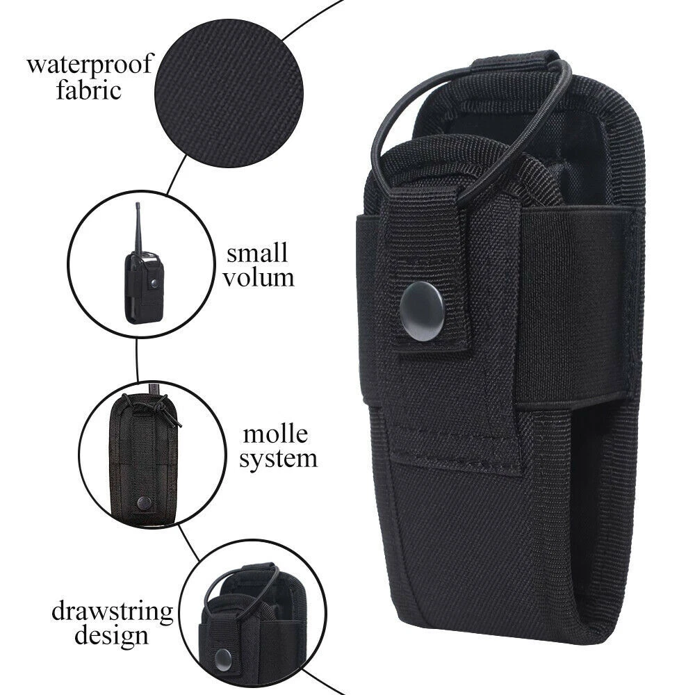 Specifica tions: Material: N ylon Weight: About 60g Size: 6.5*5*15CM Color: Black Feature: -Made of 1000D high-quality waterproof nylon material. It is strong, durable, wear-resistant and tear-resistant. -Small size and lightweight. Easy to carry and store. -Designed with Molle system, can be attached to backpack, vest, belt and other molle gears. -The size of the bag is adjusted by elastic band, which can firmly fix the items, and is easy to open and close the bag. -Multifunctional design, which can be used for camping, hiking, hunting, mountain climbing, fishing or other outdoor activities. -It makes your hands at ease, safe and convenient, and it can hold small devices such as phones, GPS, walkie-talkies and portable radios,EDC tools -Fit for outdoor sports, police, firefighters, security guards, first responders and other 8-person suits. Package Included: 1 x Walkie Talkie Pouch