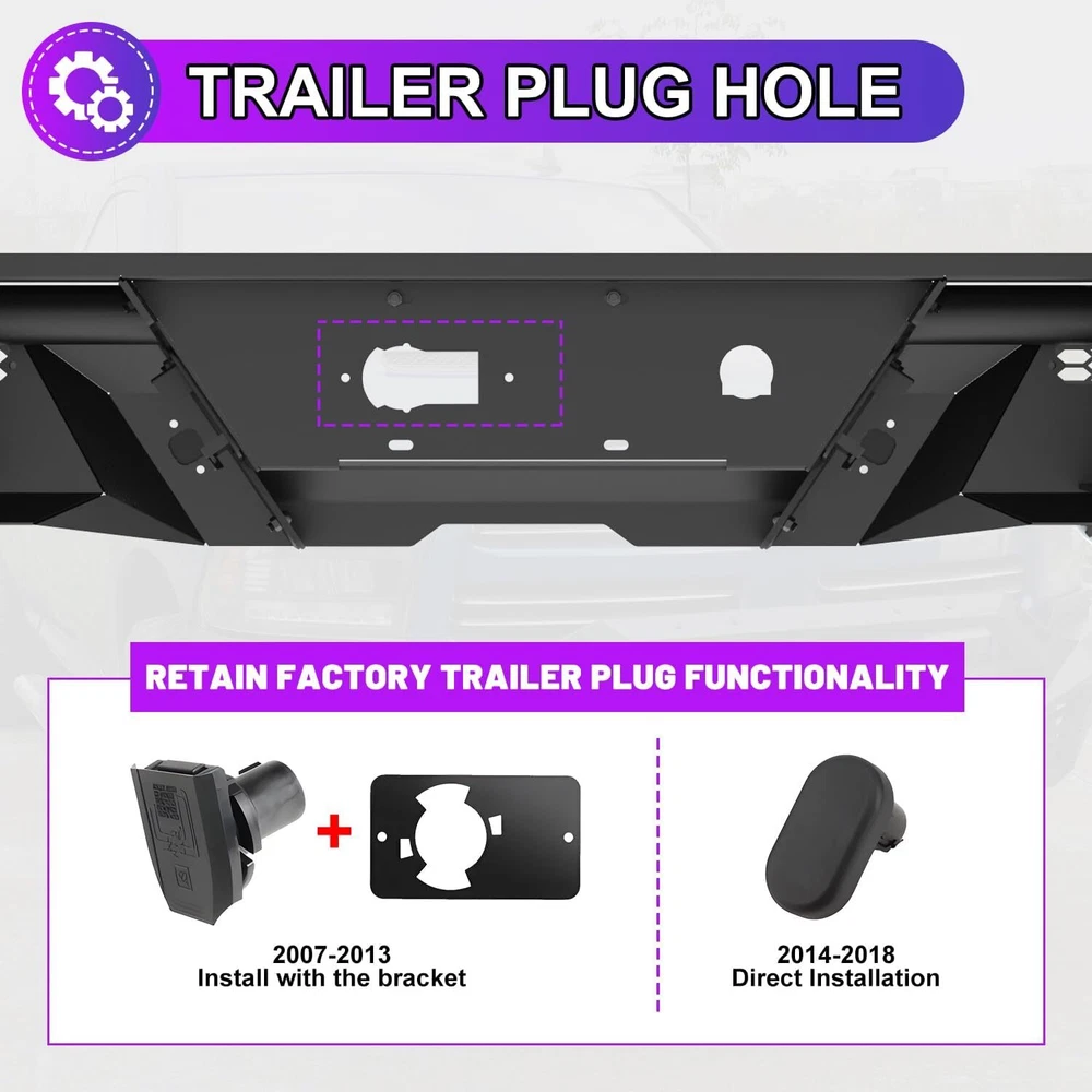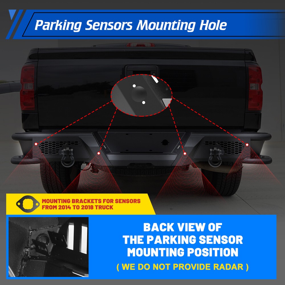 Store Categories Other Car Refrigerator Front Bumper Rear Bumper Fender Flares Inner Fenders Side Steps Running Board A-Pillar Light Mount Brackets Headlights Taillights Fog Lights LED Headlights LED Taillights LED Fog Lights Jeep Chevrolet Ford Toyota Dodge GMC About this item 🚙 【Off-road Rear Bumper Compatibility】Rear bumpers can make or break your truck's limits for off-roading. This rear bumper will be compatible with 2007-2018 chevy silverado 1500 and for 2007-2018 GMC Sierra 1500. 🚙 【Modern Convenient Design, Retain all OEM Features】There are built-in steps on the sides of the rear bumper, equip the bumper with 2 D-ring shackles & 1 Pair 4'' led pod lights that be ready for any situation. Retain all OEM features with the rear bumper. Not only is the bumper compatible with the factory hitch, but it also retains the OEM parking sensors and factory blind spot module sensor. 🚙 【Carbon Steel with E-coating, Longlife and Easy to Clean 】The rear bumper is constructed of 3/16” carbon steel sheet, that has been precisely welded for an accurate fit and stout protection for 2007-2018 chevy silverado 1500. To ensure it is corrosion-resistant, enhancing its looks and lifespan, its finish features anti-corrosion textured powder coating. 🚙 【Bolt-on Installation, Easy and Convenient】The package includes all the parts and bolts needed for installation. Easy bolt-on install with product instruction and hardware that come with bumpers. No drilling or modifications required to silverado/ sierra pickup. 🚙 【Package & Support 】The package includes: 1 x Rear bumper/ 2* Shackles/ 2* Led Pod Lights/ All mounting hardware. 📢📢 Please feel free to contact us via message center if any question. We always stand behind these products and are committed to providing responsive customer service. (Reply within 24 hours) Vehicles Fitment 🚙 For 2007-2018 Chevy Silverado 1500 🚙 For 2007-2013 GMC Sierra 1500 🚙 For 2014-2018 GMC Sierra 1500 Main Specification 🚙 Color: Black 🚙 Include: Mounting Hardware 🚙 Finished surface: Anti-corrosion textured Steel powder coating. 🚙 Type: Rear Bumper 🚙 Material: Q235A 🚙 Package Dimensions: 33.46 * 33.46 * 13.39 inch 🚙 Package Weight: 80.47 lbs 🚙 Product Dimensions: 78.3 * 13.8 * 10.1 inch Package Included 🚙 1x Steel Rear Bumper 🚙 2x Rear LED pod lights 🚙 2x D-Ring Shackles 🚙 1* Set of Mounting Accessories Payment Delivery details Terms of sales About us Contact us Payment We accept PayPal, credit card , Apple Pay & Google Pay etc. Delivery details All items will be shipped within 1-3 business days after payment received, we will try our best to ship out as soon as we can, hope for your understanding. Please double confirm your address and contact information, which will help the delivery faster and more accurately. Note :buyers who purchase international products need to pay import tariffs!!! Terms of sales Professional installation is highly recommended. Any problem of the item please feel free to contact us first , please D o Not leave negative feedback before that, or simply return it within 60 Days in original condition. We will resolve it for you ASAP. About us Any questions please do not hesitate to contact us directly by eBay message . We will reply you within 24 hours asap, thanks for your understanding. Contact us Should you have any problem or require any further information please feel free to contact us . If you are satisfied with our product and service, please kindly leave us a positive feedback. Popular Categories On Mar 14, 2025 at 20:42:06 PDT, seller added the following information: