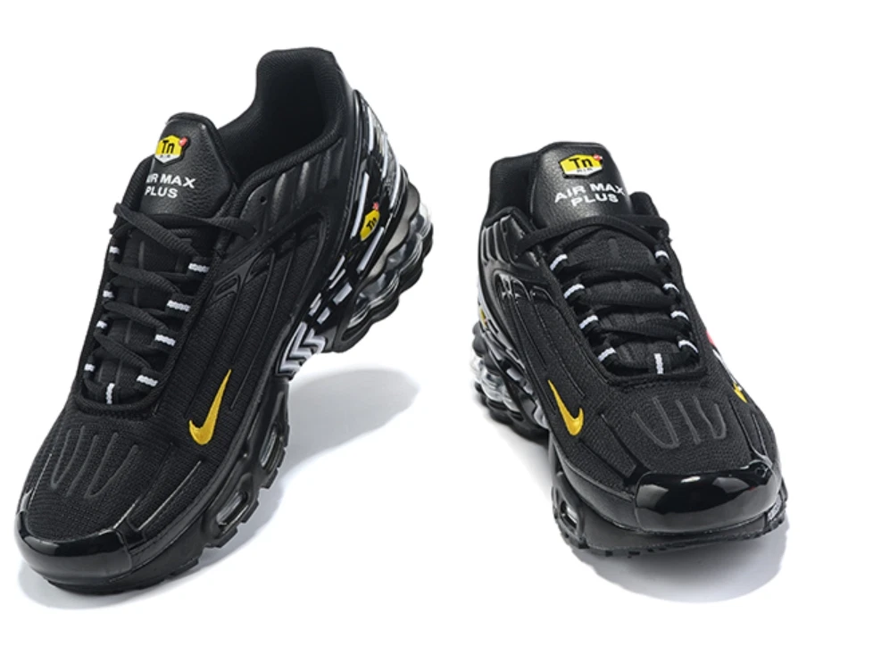 Elevate your running game with these stylish Nike Air Max Plus TN3 running shoes for Men in US size 7-12. The striking yellow and black colorway, combined with the iconic Nike branding, makes for a sleek and modern sneaker that is perfect for both athletic and casual wear. Designed with comfort and support in mind, these shoes are ideal for long-distance runners and everyday wearers alike. Featuring a breathable design and durable construction, these Nike Air Max Plus TN3 running shoes are a must-have for any shoe collection. Whether you're hitting the pavement or the treadmill, these shoes will provide the support and style you need to succeed. Not: No shoebox No shoebox, transported in bubble bag Please contact me if you have any questions