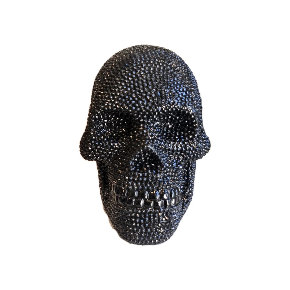 New Black Rhinestone Halloween Skull Room Decor Decoration Figurine Sculpture Condition: New 6 1/2" Tall X 5 1/2" Wide X 8" Deep This product is a large Halloween figurine sculpture featuring a skull design with black rhinestones, perfect for adding a touch of gothic and Halloween-themed decor to any room. Made from resin and synthetic materials, this figurine is suitable for women, teens, men, adults, and kids who appreciate a girlish, lacey, or Day of Dead aesthetic. The black color and intricate details make it a striking addition to any home or garden, especially during the Halloween season. (Bin A64) SKU00090226PH