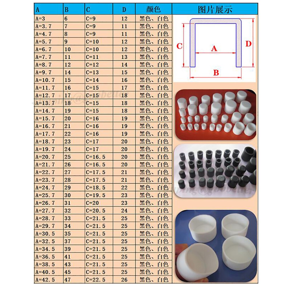 Black Round Silicone Rubber End Cover Caps Dust Cap For A=3mm~200mm Pipe Tubing Specification: * Type: Round End Cover Caps * Material: Silicone Rubber * Colour: Black * Temperature resistance: -40℃ ~250℃ * Hardness: Shore 50 * Sizes: 3mm - 200mmm * For specific parameters, pls refer to the attached parameter diagram * Features: Environmentally friendly silicone rubber, good flexibility, corrosion resistance, acid and alkali resistance, UV resistance, aging resistance, long service life, high and low temperature resistance, etc * Note: All values are manually measured and maybe have minor errors, pls understanding Due to factors such as lighting, angle, display ect, there may be slight differences between the photos and the actual product. Please refer to the received product. Package Include: According to Your Choose x 1 Dear Customer: If You Need Large Quantity or Other Quantity, We Can Ship the Goods According to Your Requirement. Please Contact Us. Thank You, If You Need Other Sizes, We Can Offer Customization. Please Contact Our Customer Service for Details. Terms of Sales If You Are Not Satisfied with the Item, Please Contact with Us. We Will Offer Full Refund to You When We Receive Your Returned Item. Any Problem, Please Feel Free to Contact with Us. Contact Us: We Care About Our Valued Buyers, If You Have Any Questions, Our Customer Service Staffs Will Be Very Glad to Help You. We Try Our Best to Reply to Your Emails As Soon As Possible, However, Due to High Volume of Daily Incoming Emails and Time Zone Difference, We May Not Be Able to Reply Your Emails Immediately. Please Allow 24 Business Hours for Us to Response. About Item:for the Functional Products in Our Shop, We Make Sure That the Functions Are the Same As Description, but the Actual Color and Shape May Looks a Little Different from Pictures Because of the Technical Improvement and Manufacturing Variance. Please Be Advised Before You Bid. On Jan 2, 2025 at 00:19:45 PST, seller added the following information: