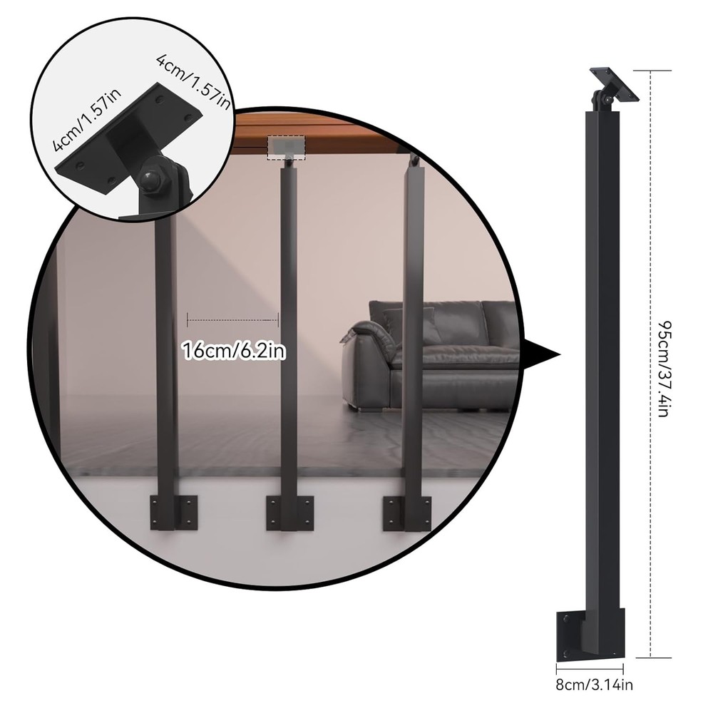 Side Mount Stair Railing Indoor, Black 37.4 inches / 95 cm, Black-Side Product Details Is Discontinued By Manufacturer : No Product Dimensions : 3.1 x 3.34 x 37.4 inches; 14.24 Pounds Manufacturer : MM MELISEN Country of Origin : China Material: Iron Brand: MM MELISEN Item dimensions L x W x H: 3.1 x 3.34 x 37.4 inches Color: Black-Side Mount Shape: Square Columns Durable and Stable: The baluster post is made of high-quality thickened material, with a rust-resistant, corrosion-resistant and wear-resistant surface coating. It always stays in good condition under daily use and natural environment, which reduces the need for repair and replacement and saves you unnecessary trouble and expenses. 270°Adjustable Bracket: Our stair railing post is equipped with a 270° adjustable bracket to meet the installation needs of different occasions; Square post diameter: 1.57x1.57in; Swivel head size: 1.57x1.57in; The distance from the wall when installing: 3.14 inches. Easy Installation: The installation process of the railing post is simple and easy. All you need to do is drill the holes and secure the brackets with expansion screws. The recommended mounting spacing is 6 inches. Please note that this product is not suitable for use in seaside or wet areas. If you have any questions or need assistance, please feel free to contact us and we will be happy to assist you. Easy to Clean and Maintain: The smooth surface of the stair railing posts effectively reduces the accumulation of dust and dirt. You just need to wipe it with regular cleaner and water, no special maintenance tools or techniques are required. This design not only facilitates your daily cleaning and maintenance work, but also extends the service life of the stair railing posts, bringing you longer comfort and safety. Multi-scenario Application: Staircase handrail risers are widely used in indoor and outdoor decoration, suitable for family villas, office buildings, terraces, attics, balconies, lounge bars and many other places. We provide customized service, we can customize various styles, colors and sizes of railing posts according to your needs and preferences to meet your personalized needs.