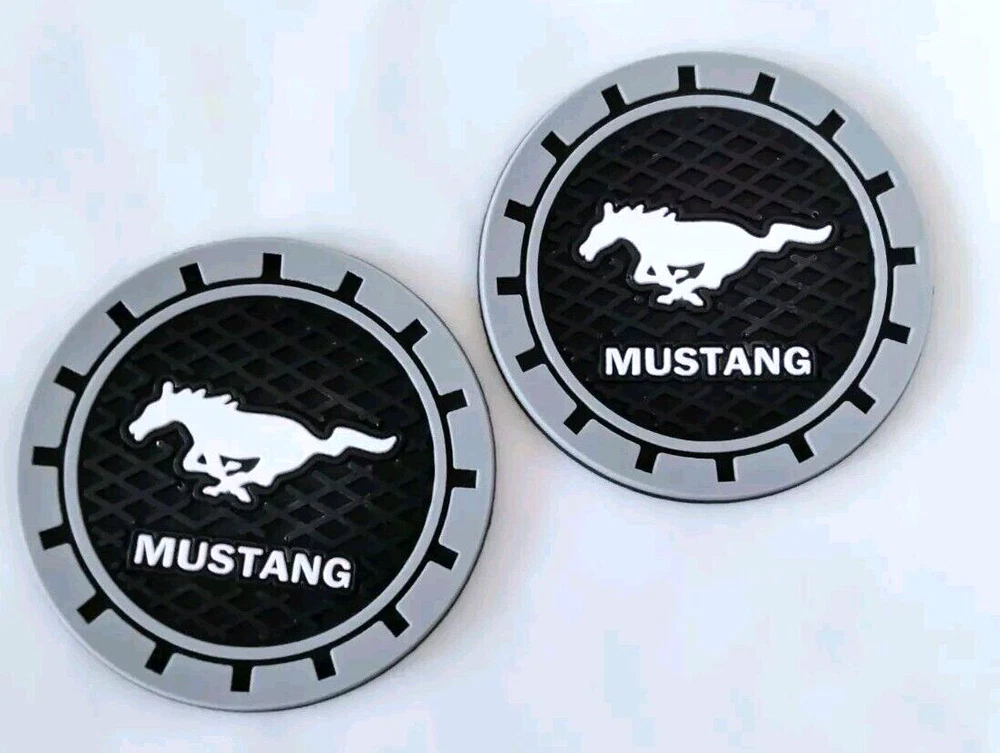 Black Silicone Car Coasters Cup Holder Non-Slip Set Of 2 New For Mustang