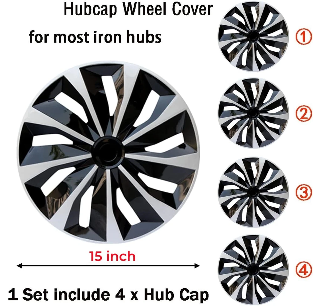 Notice: before you buy it,please check your tire size gtin13: Does not apply Fitment: R15 Tire Attention: not for aluminium alloy hub Type: Hub Cap Material: Plastic, Silver ABS Color: Black and Silver Features: Easy to Install Number in Pack: 4 Notice 2: 15" only fits R15 tire Brand: Unbranded Placement on Vehicle: Front, Left, Rear, Right Including: 4pc Finish: Glossy, Rust Preventative UPC: Does not apply