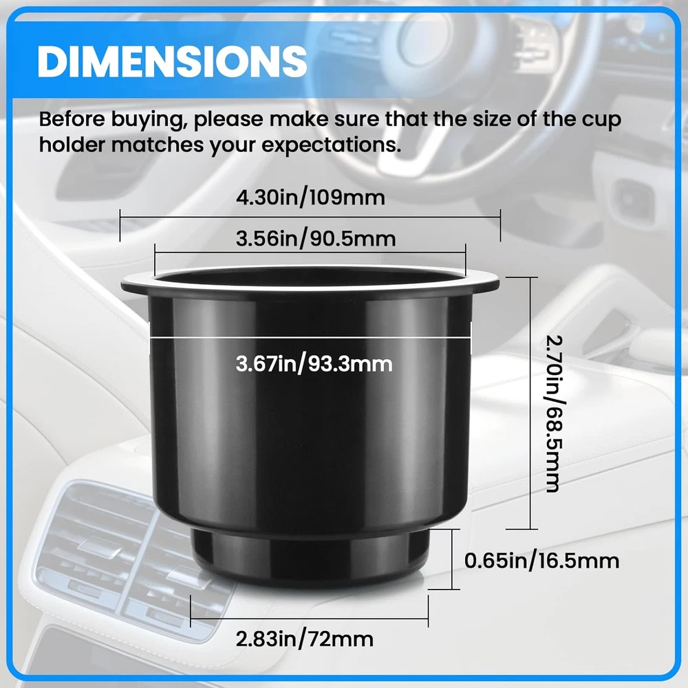 Store New Arrivals Add to Favorite View Feedback Contact Black Sofa Cup Holder, Insert Universal Cup Drink Holde for RV Boats, Cars, Sofas and Golf Carts (2-Piece) Description Item model number CUP-HOLDER-INSERT-S Color Black Material Plastic Country of Origin China Manufacturer Part Number CUP-HOLDER-INSERT-S Item Weight 5 ounces Model CUP-HOLDER-INSERT-S Product Dimensions 4.33"L x 4.33"W x 2.55"H Size slotted 【Size】3.34 inches deep, 3.54 inches inside diameter, 4.33 inches lip diameter. The cup holder fits any beverage with a diameter of 3.54 inches or smaller. 【Material】The black sofa cup holder is made of ABS plastic, smooth surface, easy to clean, providing you with a convenient use experience. 【Design】Built-in cup holder is designed to prevent water spills from shaken cups from staining your car or sofa. 【Scope of Application】Widely used in ships, yachts, rvs, cars, commercial vehicles, poker tables, coffee tables, sofas. 【Easy to Use】Plastic drop in can be placed directly on tables, sofas, consoles, and can hold most beverages, cups, or other items. Product Description ABOUT US We offer the best prices around on high quality products. Our E-store includes media such as books, movies, music and games while offering electronics, toys, sporting apparel, clothing, tools, general home, garden items and more. SHIPPING We are always working hard to ensure your package arrives as soon as possible. Please understand that some factors like weather, high postal traffic, and the performance of shipping companies are outside of our control. We offer free shipping to the lower 48 states and ship within 2 business days of payment, usually sooner. We do not accept P.O. Boxes. Please provide a physical address. For shipping outside of the continental USA, we only use eBay's Global Shipping Program.The item is shipped to KY and then sent to the rest of the world. International customers are responsible for all duties and taxes. Continue to check out in order to calculate costs for shipping the item to your country. Messages regarding eBay's Global Shipping Program MUST be directed at eBay EXCLUSIVELY. RETURNS We offer a 30-Day Return Policy on items which you are not completely satisfied with. You have the option for a full-refund or an exchange of the item. No returns are available on items shipped outside of the USA. PAYMENT We accept PayPal. CONTACT US This page content is yet to come Please ad us to your favorite seller and visit again later Thank You CUSTOMER SATISFACTION We try our very best to make sure every customer is completely satisfied. If there's a problem, message us! We're happy to help. WE ACCEPT Copyright © 2021 AutoDS. | All Rights Reserved