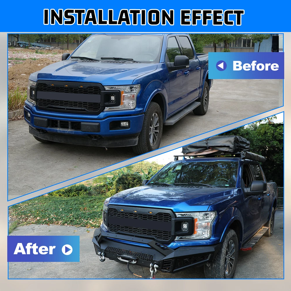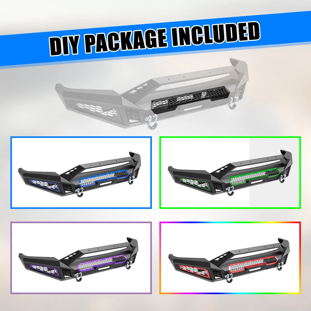 Black Steel Front Bumper w/LED Pod Lights+Shackles For 2018 2019 2020 Ford F-150 Features: 【Mounting Light Hole Position】 Specially designed for 2018-2020 Ford F-150 front bumper, protects your front grille.Modular design, can be DIY as you like. 【Premium material 】This Front Bumper is made of steel to provide excellent strength and durability, High-quality textured powder coating provides corrosion protection, multi-point welded to the sturdy bracket for strong bearing capacity. 【Easy to Bolt installation 】 Simply bolt directly to the optional modular front bumper, no drilling required.Excellent fitment and easy installation.To play a decorative and functional role. Fitments: Compatible with 2018-2020 Ford F-150 Specifications: Surface Finish: Black Anti Rust Powder Coated Steel Include: Mounting Hardware, Designed in the USA 360 days manufacturer warranty. 30-Day return policy. 【Mid-Width Front Bumper】 1. Allows DIY colour spraying 2. Works with Factory Parking Sensors,w/Park Distance Sensor Mounting Hole 3. W/Flip-up Licence Plate Mounting Bracket 4. W/Bumper Mounting Bracket 5. W/Light Bar Mounting Bracket,Can be installed light bar up to 30 inches 6.Product Size: 44.5 x 10.5 x 9.1 inch Weight: 57 lbs 【Full-Width Side Wings】 1. Wing Guard Trim Blocks 2. Park Distance Sensor Mounting Hole:1.Works with Factory Parking Sensors ;2.With dust plug when no sensor is installed 3. Shark Gill-like Decorative Panels:Allows DIY colour spraying 4. Honeycomb decorative mesh panels:Allows DIY colour spraying 5. Pod Light Mounting Bracket:Accept 2 3" or 4" Pods Light on Each Side(w/2*4" LED Pod Lights) 6.Product Size: 22.1 x 24 x 11.3 inch Weight: 39.5 lbs 【Bull Bar】 1. Shark Gill-like Decorative Panels 2. Light Bar Mounting Bracket/Pod Light Mounting Bracket:Can be installed light bar up to 30 inches or 2 pods light 3.Product Size: 48.3 x 7.6 x 7.6 inch Weight: 8.8 lbs Package Included Style:2 IN 1 1 * Mid-Width Front Bumper 2 * Full-Width Side Wings 2 * 4" LED Pod Lights 2 * D-Ring Shackles 1 * Set of Mounting Accessories Style:3 IN 1 1 * Mid-Width Front Bumper 2 * Full-Width Side Wings 1 * Bull Bar 2 * 4" LED Pod Lights 2 * D-Ring Shackles 1 * Set of Mounting Accessories Payment Delivery details Terms of sales About us Contact us Payment 👉 We accept PayPal (Recommended), credit card, VISA, Google Pay & Discover etc. 👉 Please submit your payment within 7 days after your purchase. 👉 If not, eBay will automatically open an Unpaid Item Dispute on our behalf if the item(s) are not paid within 7 days. Delivery details 👉 Please double check your delivery address and contact information. 👉 All items will be shipped within 1 business days after payment received. 👉 Tracking numbers will be easily accessible ASAP they are created and processed. Terms of sales 👉 Free 30 days Return, we will cover the return post fee. 👉 If a defective product was received, please do not hesitate to message us via eBay message. 👉 We will response in 24 hours in business to resolve the problem 👉 We stand behind our products. Items can be returned for exchange or full refund within 30 days from the date you receive. About us 👉 Wolfstorm has a huge warehouse and office located in the United States. 👉 All US domestic 48 states customers are able to benefit from the FREE SHIPPING services. 👉 Our experienced, professional customer service representatives offers prompt and courteous service. 👉 Best quality products, outstanding services and professional experience keep our customers. Contact us 👉 Please feel free to contact us if you have any problems. 👉 Emails will be replied within 24 hours in working days. 👉 After hours emails will be replied on the next business day. On Dec 12, 2024 at 23:58:27 PST, seller added the following information: