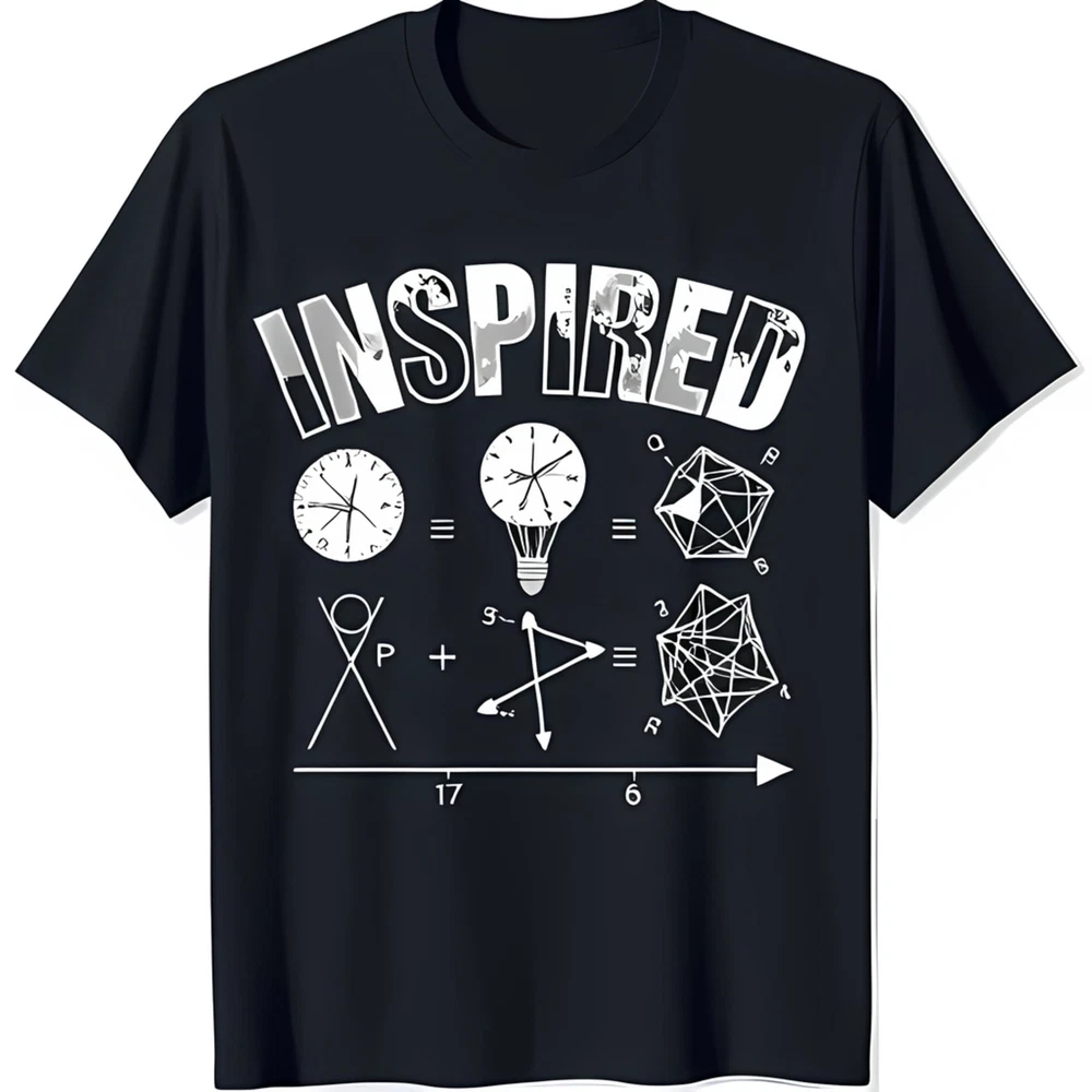 Black T-Shirt with 'INSPIRED' Graphic Geometric Shapes & Light Bulb Design