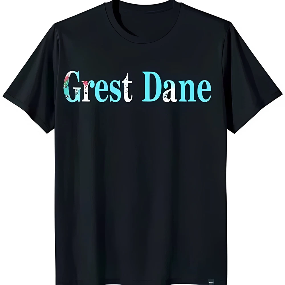 Black T-Shirt with White & Blue 'Grest Dane' Print Casual Tee
