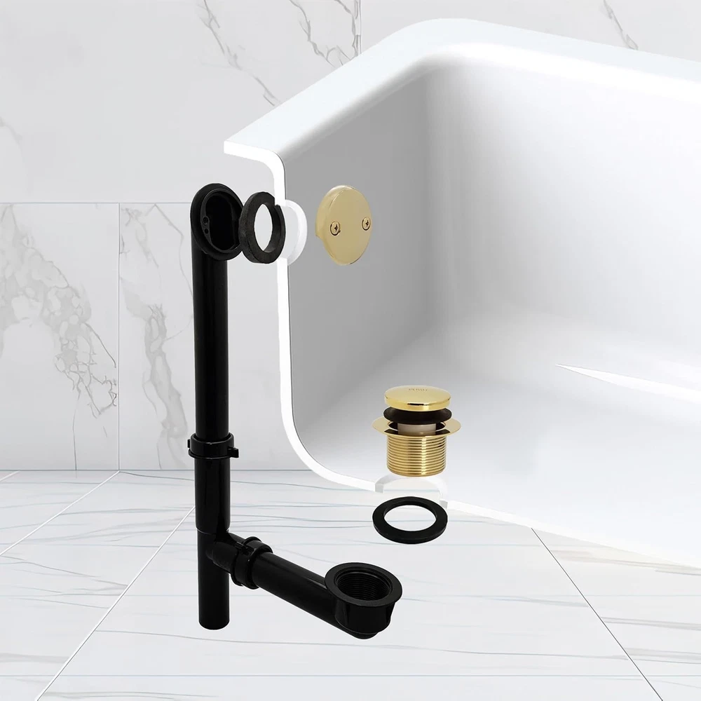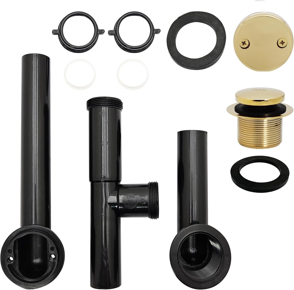 Black Tubular Tip-Toe Bath Waste Drain Kit, Polished Brass ‹ › ‹ › ‹ › ‹ › ‹ › ‹ › ‹ › ‹ › ‹ › ‹ › ‹ › ‹ › ‹ › Black Tubular Tip-Toe Bath Waste Drain Kit Elegant Polished Brass Accent Product Specifications: Pipe Size: 1-1/2 in. black tubular bath waste assembly Drain Plug: Tip-Toe bath tub drain plug (D3322) Faceplate: Two-hole faceplate with two (2) 1/4 in.-20 x 1-1/2 in. plated brass screws (D329) Materials: Black poly tubes with slip joint connections Components: Two-hole elbow, shoe, and tee Features: Poly insert style, Tip-Toe bath waste utilizes poly ferrules and slip joint nuts for versatile assembly. Designed for easy installation conforming to tub overflows of varying sizes. Overflow and stopper options available in various finishes, ensuring perfect harmony with your decor. ADA approved design, combining accessibility with elegance. Why choose our Black Tubular Tip-Toe Bath Waste Drain Kit? Transform your bathing experience with our Black Tubular Tip-Toe Bath Waste Drain Kit, where function meets luxury. Meticulously crafted from materials and featuring a polished brass accent, this drain kit is not only a reliable plumbing solution but also a sophisticated addition to your bathroom. Since 1935, excellence has been our hallmark. Choosing our drain kit means embracing superior craftsmanship that adheres to the stringent standards of NSF, IAPMO, ADA, and more. This exceptional durability ensures peace of mind for to come. Upgrade your bathroom with our elegant yet practical bath waste drain kit. Dive into comfort and style—order now and elevate your home's elegance. Shipping Free & Fast Shipping - We offer free shipping to most of the USA with a normal delivery time of 3-10 business days. However, due to various situations, additional delivery time (up to 3 weeks) may be required for some items. Alternative Carriers - We may use alternative carriers (e.g. USPS, FedEx, UPS, etc.) to ensure your package arrives safely and on time. Due to the use of multiple carriers, we are unable to provide a tracking number automatically. Handling Time - Orders are processed and shipped within 1-5 business days of receiving cleared payment. Shipping Restrictions - Shipping to Alaska, Hawaii, Puerto Rico, Guam, and other US territories may incur shipping charges or delivery restrictions. Please contact us before ordering, or your order can be refunded/cancelled. State Restrictions - There may be restrictions based on your state of purchase. For example, certain items may not be shipped to California due to state regulations. Contact for Tracking Updates - If you require tracking updates or have any concerns about the delivery of your order, please feel free to contact us, and we will be happy to assist you. Return 30-Day Hassle-Free Returns - We want you to be completely satisfied with your purchase. If you are not, you can return the item within 30 days of receiving it for a full refund or exchange. Easy Return Process - To start a return, simply contact us and we will provide you with a prepaid return shipping label and detailed instructions. Restocking Fee - There are no restocking fees for returns. However, the buyer is responsible for return shipping costs if the return is not due to a seller's error. Refund Processing Time - Refunds will be processed within 5 business days of receiving the returned item in its condition. Payment We accept all major credit cards, PayPal, and Apple Pay for your convenience. Your payment information is secure and encrypted to ensure a safe and seamless transaction. Please complete your payment within 3 days of purchase to avoid any delays in shipping. Feedback Your feedback is extremely important to us. We strive to provide the best products and customer service possible. If you are satisfied with your purchase, please take a moment to leave us a positive review. If you have any concerns or issues with your order, please contact us before leaving negative feedback. We are committed to resolving any problems and ensuring your satisfaction. Contact Us If you have any questions or concerns, please feel free to out to our customer support team. You can contact us through the eBay messaging system. We are available Monday to Friday, 9:00 am to 5:00 pm EST, and we will do our best to respond to your inquiry within 24 hours. Buy it now and enjoy a pleasant shopping experience! Type: Bath Waste Drain Kit Unit Quantity: 1 Material: Brass, Polypropylene