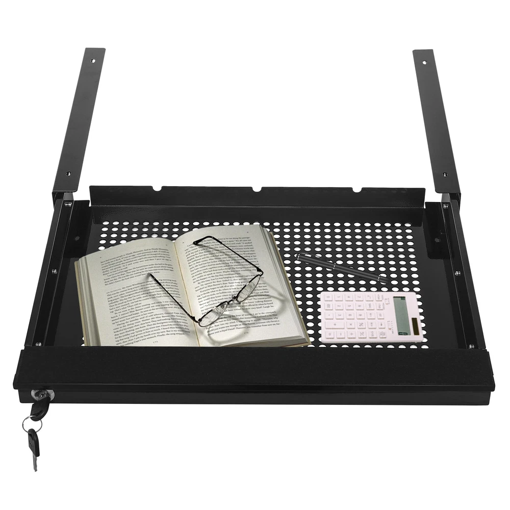 Description Declutter your workstation and enjoy a clean space with this sliding pull-out drawer. You can access your materials without disturbing office neighbors thanks to the quiet, smooth sliding mechanism, and the sleek design blends well with a majority of environments whether at home or in the office. Buy it quickly and enjoy a more convenient life. Under-Desk Drawer Storage Organizer for Standing Desks Pull-out Drawer Black Welcome~ Description Declutter your workstation and enjoy a clean space with this sliding pull-out drawer. You can access your materials without disturbing office neighbors thanks to the quiet, smooth sliding mechanism, and the sleek design blends well with a majority of environments whether at home or in the office. Buy it quickly and enjoy a more convenient life. Key Features Sturdy and Durable: It is made of high-quality iron with welding and plastic spraying processes, which is non-toxic, odorless, anti-corrosion, and rust-resistant, ensuring its beauty and long-term use. Excellent Organizer: You can put your mouse, charger, sticky notes, etc. in it, and can be used at hand, bringing convenience at the same time can also make your desktop more neat! Maximize Your Desk Space: You can hide it under the table, and it does not take up space in your space and can store a variety of items so that your desktop is not messy. Thoughtful Design: You can retrieve your items quickly and quietly with its smooth sliding mechanism without disturbing others. In addition, the locking and enclosed design ensures that the items you place are secure and protected from dust. Ready to Go: The one-piece structure and pre-drilled holes allow you to install it directly after receiving it, which is very time-saving and convenient! Easy to Clean: Thanks to its simple construction and smooth surface, you can wipe the stains off its surface with a damp rag. Ideal Gift: Thanks to its practicality and beauty, you can give it to your friends as a holiday or housewarming gift! Protective Package: We use pearl cotton to package this product to minimize damage to the product during transportation. Details Rounded Edges: The smooth and rounded edges are comfortable to touch and improve the safety of use. Fixing Screws: They make this product structure more stable to store your writing utensils and office supplies with assurance. Heat Sinks: It ensures air circulation to keep the items you place fresh and safe. Application It is installed under the table to store various items, such as a keyboard, mouse, books, iPad, phone, pen, pencil, glue, eraser, adapter, earphone, cosmetics, or other small items used regularly. It is designed to fit both standing desks and standard fixed-height workstations. It's designed for 17-inch laptops or smaller. Specification Color: Black Style: Modern Material: Iron Process: Welding and Plastic Spraying Shape: Rectangular Mount Type: Under Table Mount Applicable Table Thickness: 20mm/0.79in Product Inner Size: 45*33.8*4.57cm/17.72*13.31*1.8in Product Outer Size: 47.6*44.6*5.51cm/18.74*17.56*2.17in Package Size: 51*48*8cm/20.08*18.9*3.15in Load Capacity: 2kg/4.4 lbs Net Weight: 2.6kg/5.73 lbs Gross Weight: 3.1kg/6.83 lbs Package Included 1* Sliding Pull-out Drawer 2* Keys Notes Please check that the desktop type is appropriate before purchasing. Please note that this product does not contain any other items shown in the picture. Please ensure that your desk can support the total weight of the drawer and load capacity. Please allow the slight color difference caused by the shooting light and 1-3cm error due to manual measurement and make sure you do not mind before ordering. tu1 Payment Delivery details Terms of sales About us Contact us Payment We accept ebay payment 。 Fees such as import duties, taxes are not included in the item price or shipping costs. These charges are the buyer's responsibility. Delivery details Shipping: 2-9 working days to: USA Terms of sales We maintain high standards of excellence and strive for hundred percent customer satisfaction. Feedback is very important to us. We hope that you contact us immediately before you give neutral or negative feedback, so that we can address your concerns. It is impossible to address issues if we do not know about them! About us Your satis faction is our ultimate goal. We work hard to earn your trust and future business. Our certified technicians have tested each item before shipping. The unit comes with 1 year limited warranty on all manufacturing defects. a) If you receive a defective item, you may return it or ask for a discount. Please contact us within 14 days after you receive the package. b) What you returned must be intact and in its original packaging as re? u. Customer is responsible for shipping costs of the returned item. c) We will cover the cost of shipping back t with the shipping rate indicated in the registration page. We will send you a new unit or refund the full payment you paid. Thank you. Contact us Business Hour Business Hour: Monday To Friday: 8:30 AM to 5:00 PM (Beijing China time) Due to time zones, our reply to your questions may not be immediately. But within above working time, we will reply your email within 24 hours. If it's non-workdays, please kindly be patient and wait till Monday. Please contact us with ebay message. Please feel free to contact us if you have any questions. Monday To Friday: 8:30 AM to 5:00 PM (Beijing China time) Due to time zones, our reply to your questions may not be immediately. But within above working time, we will reply your email within 24 hours. If it's non-workdays, please kindly be patient and wait till Monday. Please contact us with ebay message. Please feel free to contact us if you have any questions.