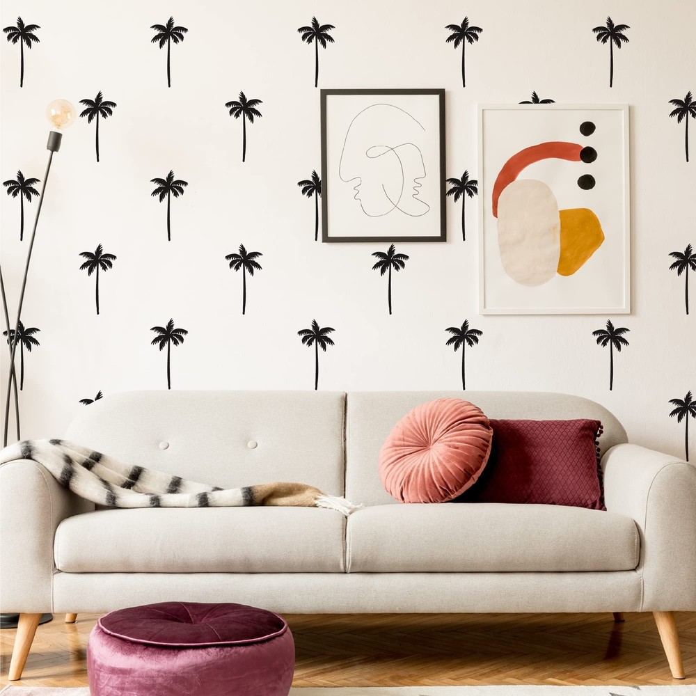 A Room with Black Vinyl Palm Tree Wall Decals, Peel and Stick Modern Wall Stickers for Nursery Kids Room, Bedroom Living Room Home Wall Art Decor Product Details Brand: SHYJSHYJ Color: Black Item dimensions L x W x H: 14.5 x 11.8 x 0.5 inches Recommended Uses For Product: Wall Theme: Modern,Palm Tree Cartoon Character: Palm Tree Special Feature: Waterproof, Removable, Fade Resistant Number of Pieces: 24 Style: 现代 Age Range (Description): Kid Brand: SHYJSHYJ Color: Black Item dimensions L x W x H: 14.5 x 11.8 x 0.5 inches Recommended Uses For Product: Wall Theme: Modern,Palm Tree Cartoon Character: Palm Tree Special Feature: Waterproof, Removable, Fade Resistant Number of Pieces: 24 Style: 现代 Age Range (Description): Kid Reusability: Single Use Item Form: Sheet Pattern: Tree Indoor/Outdoor Usage: Indoor Finish Type: Matte Number of Items: 24 Target Audience: Children Product Dimensions: 14.5 x 11.8 x 0.5 inches Item Weight: 4.8 ounces Manufacturer: SHYJSHYJ Date First Available: September 13, 2022 Easy peel&stick. Removable and no residue left Simple Design, perfect for nursery walls, bedroom, living room, kitchen, bathroom, office, dorm wall decor Made of Premium Matte Finish Viny Material. Waterproof, No Fade and lasting over 7 years. Apply to any surface as well as textured surface. Not only for walls. Great to stick on your door, windows, refrigerator, doors, glass, metal, wood, furniture, floors. Includes FOUR Large 14 inch (W) x 11 inch (H) sheets, contains 24pcs trees. Arrived in a Very solid Beautiful Cardboard Envelope That Has a Snap to Secure Decals And Keeps Decals from Bending.