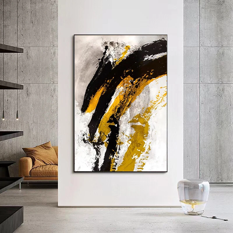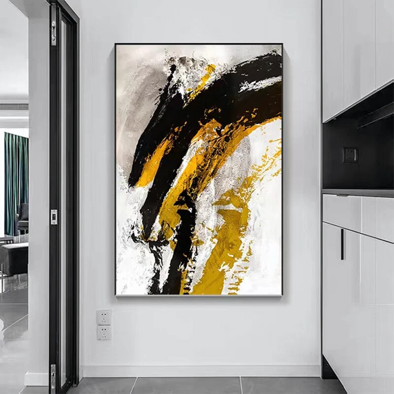 Black White Abstract Hand painted Oil Painting Living Room Aisle Decoration