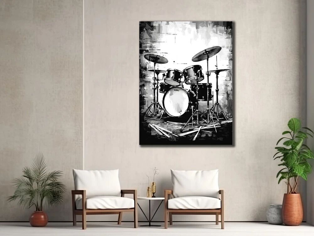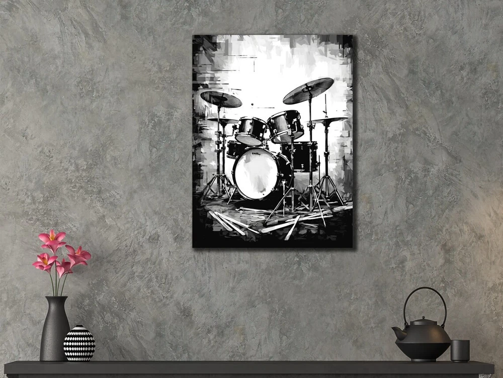 Black & White Drums Musical Instrument Unframed Canvas Print Australian Wall Art