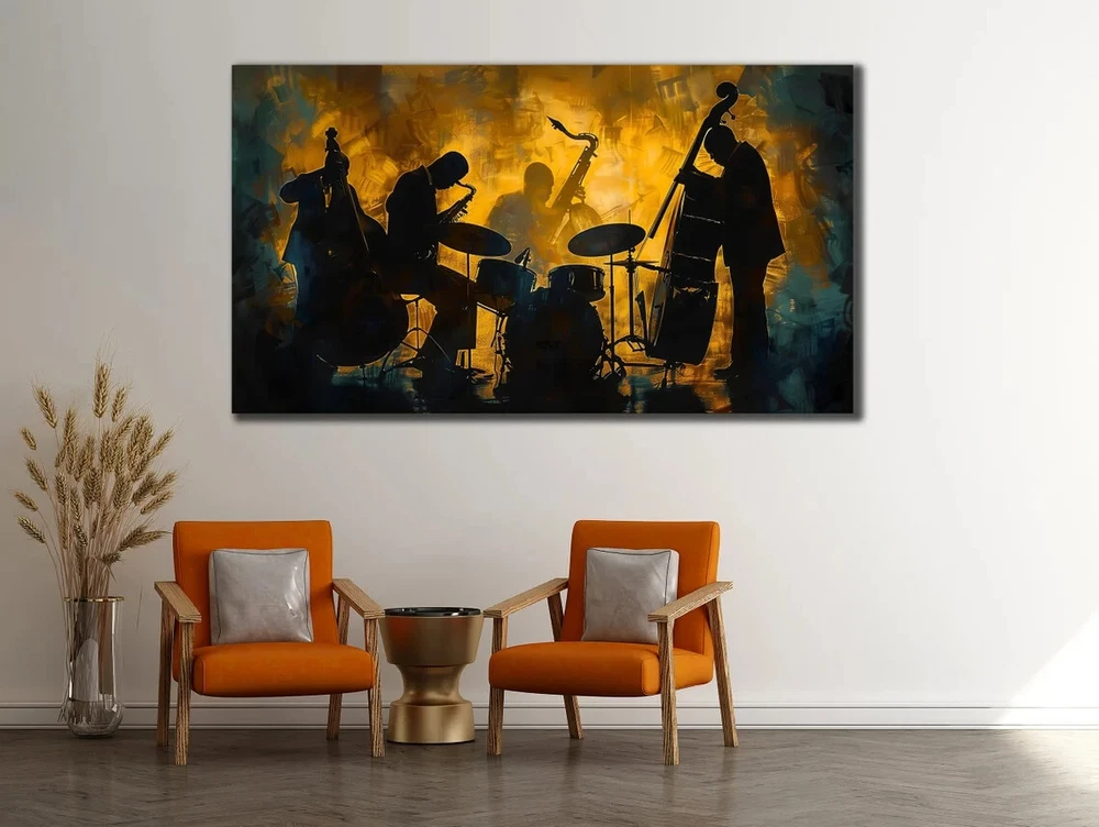 Black Yellow Music Jazz Band Abstract Unframed Canvas Print Australian Wall Art