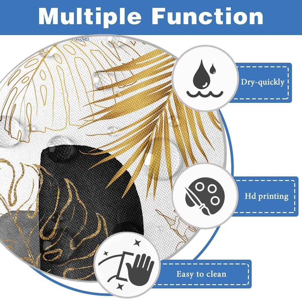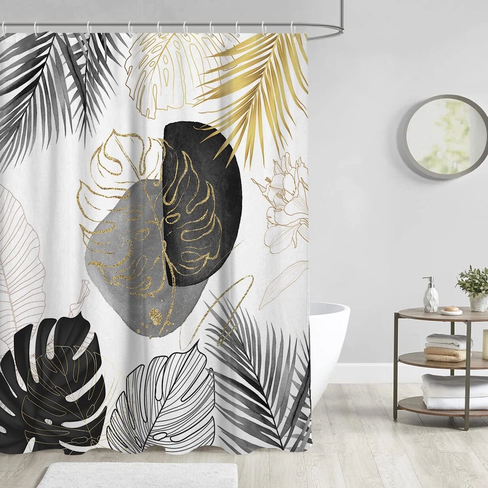Black and Gold Leaves Shower Curtain White Leaf Palm Boho Tropiacl Abstract G...