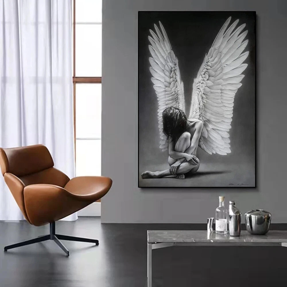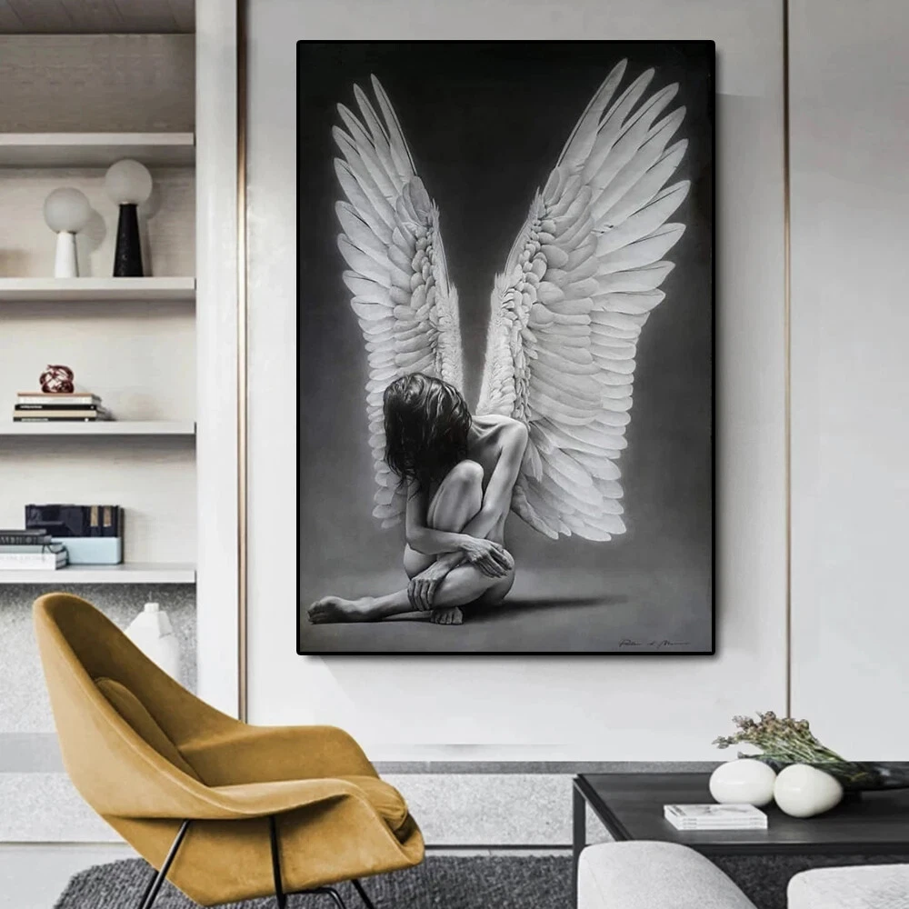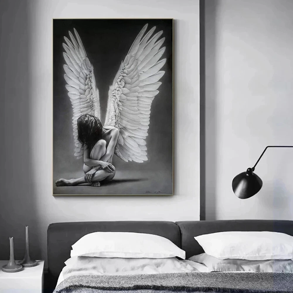 Black and White Artistic Angel Girl Poster Prints Wall Art Home Decor