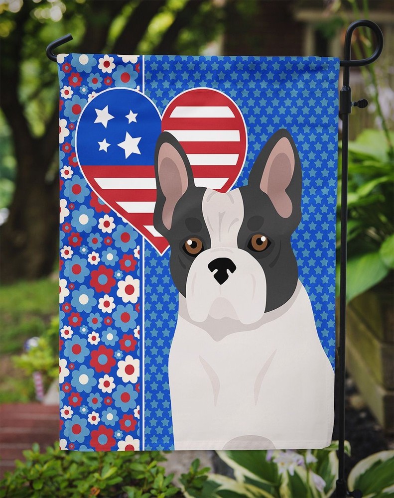 Thank you for visiting our Garden Flag listing. We now have over 20 practical, useful, and quality items featuring your favorite dog breeds. Click on the Sellers other items link above and then type in your favorite breed in the search bar. Now over 300 breeds plus free shipping. Highlights Vibrant Outdoor Decor: Elevate your garden, patio, or yard with Caroline's Treasures Garden Flag, featuring stunning artwork that adds a pop of color and personality to your outdoor space. Premium Quality and Durability: Made from two pieces of thick, double-sided polyester fabric, this 2-ply garden flag is water-resistant, weatherproof, and designed to withstand wind, rain, and snow, ensuring long-lasting beauty. Readable on Both Sides: With correctly readable words on both sides, this garden flag offers a delightful visual experience from any angle, making it a captivating focal point in your outdoor decor. Made in the USA: Proudly crafted in the USA, Caroline's Treasures Garden Flag is a symbol of exceptional quality and craftsmanship. Enhance your outdoor setting with this high-quality flag and enjoy its vibrant charm for years to come. French Bulldog gifts,French Bulldog collectibles Specification Brand:Caroline's Treasures Details Garden Flag featuring breed specific French Bulldog artwork. This Garden Flag is from Caroline's Treasures collection USA Love America. Enhance the beauty of your garden, patio, or yard with Caroline's Treasures Decorative Garden Flag, proudly made in the USA. Crafted from two pieces of thick, double-sided polyester fabric, this 2-ply garden flag is designed to withstand various weather conditions, making it water-resistant and weatherproof. Featuring correctly readable words on both sides, this garden flag offers a delightful visual experience from any angle. With its heavier weight, it stands out among other garden flags, ensuring stability and durability even in wind, rain, and snow. Measuring approximately 11 1/4 inches by 15 1/2 inches, this flag allows you to personalize your outdoor decor. It comes with a 1 1/2-inch sleeve sewn in, allowing easy attachment to any standard garden flag stand or garden size porch hanger (sold separately). Make a statement in your outdoor space with Caroline's Treasures Decorative Garden Flag, a vibrant and high-quality flag that adds color and personality to your surroundings. Proudly made in the USA, it's a symbol of quality craftsmanship and attention to detail. This Garden Flag is from Caroline's Treasures Dogs category of products.