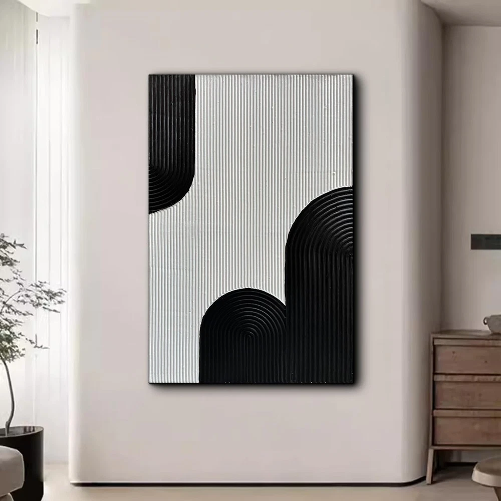 This stunning piece of art is a black and white minimalist canvas hand-painted oil painting decoration mural. The artwork features a beautiful landscape scene that is sure to captivate any viewer. The painting has been created using the oil painting production technique and is handmade in China. The piece is sold as a single piece and is unframed. It is signed with no indication of the year of production. The artwork is perfect for those who appreciate abstract art and is sure to be a great addition to any art collection.