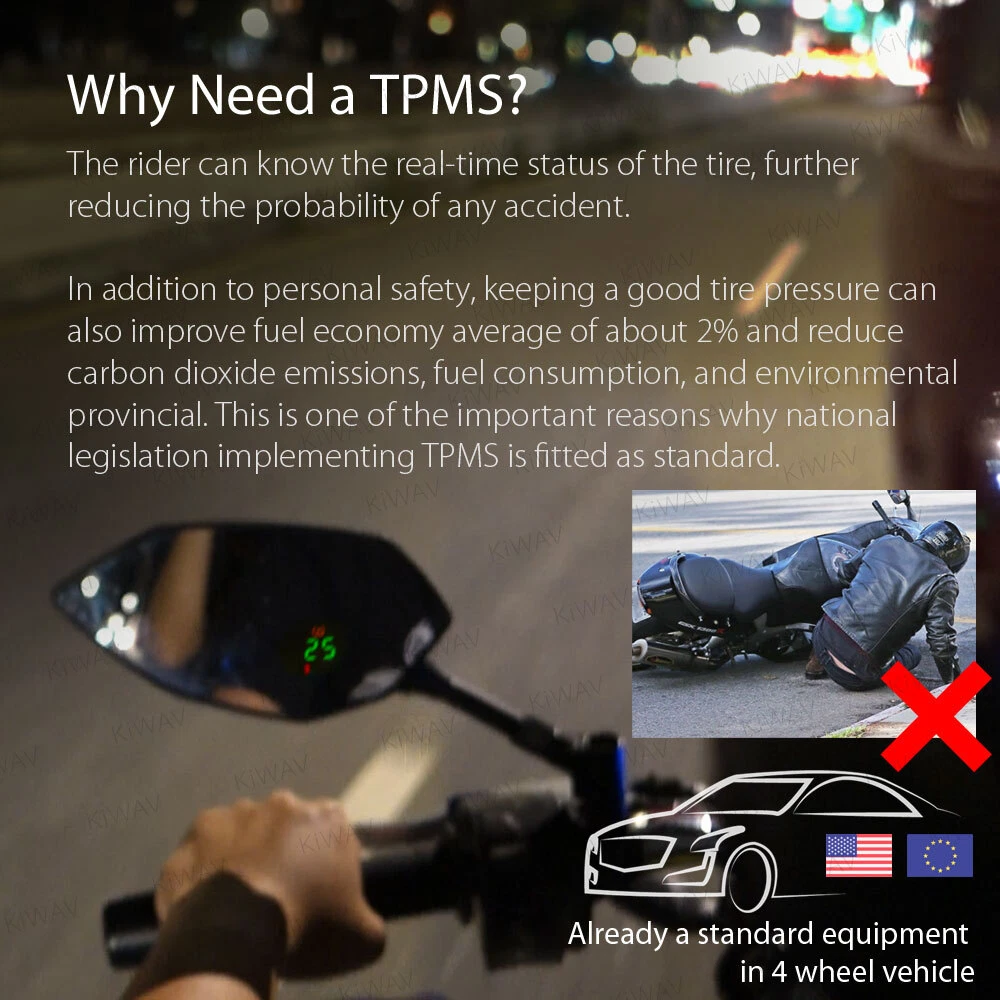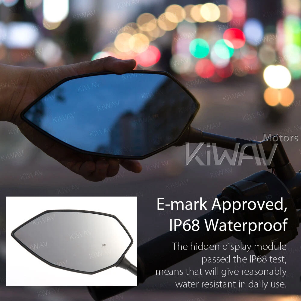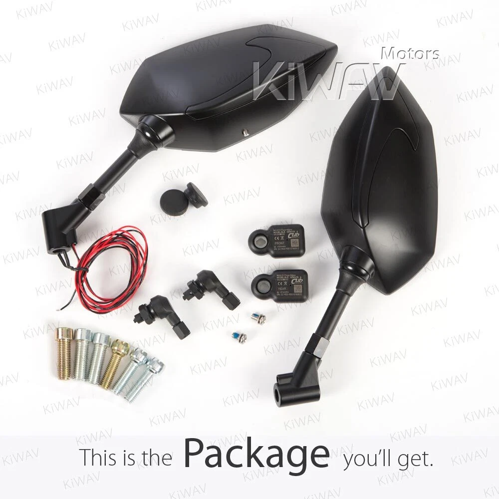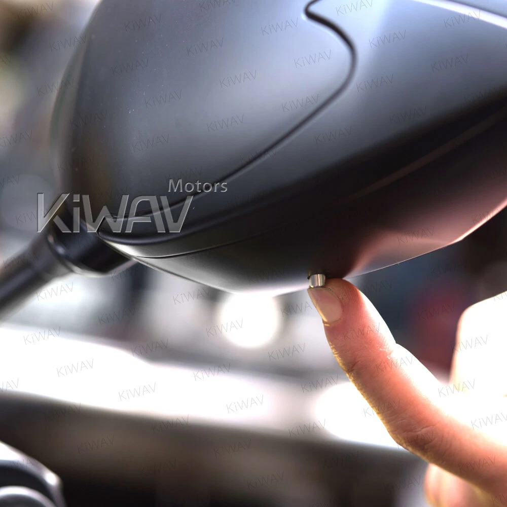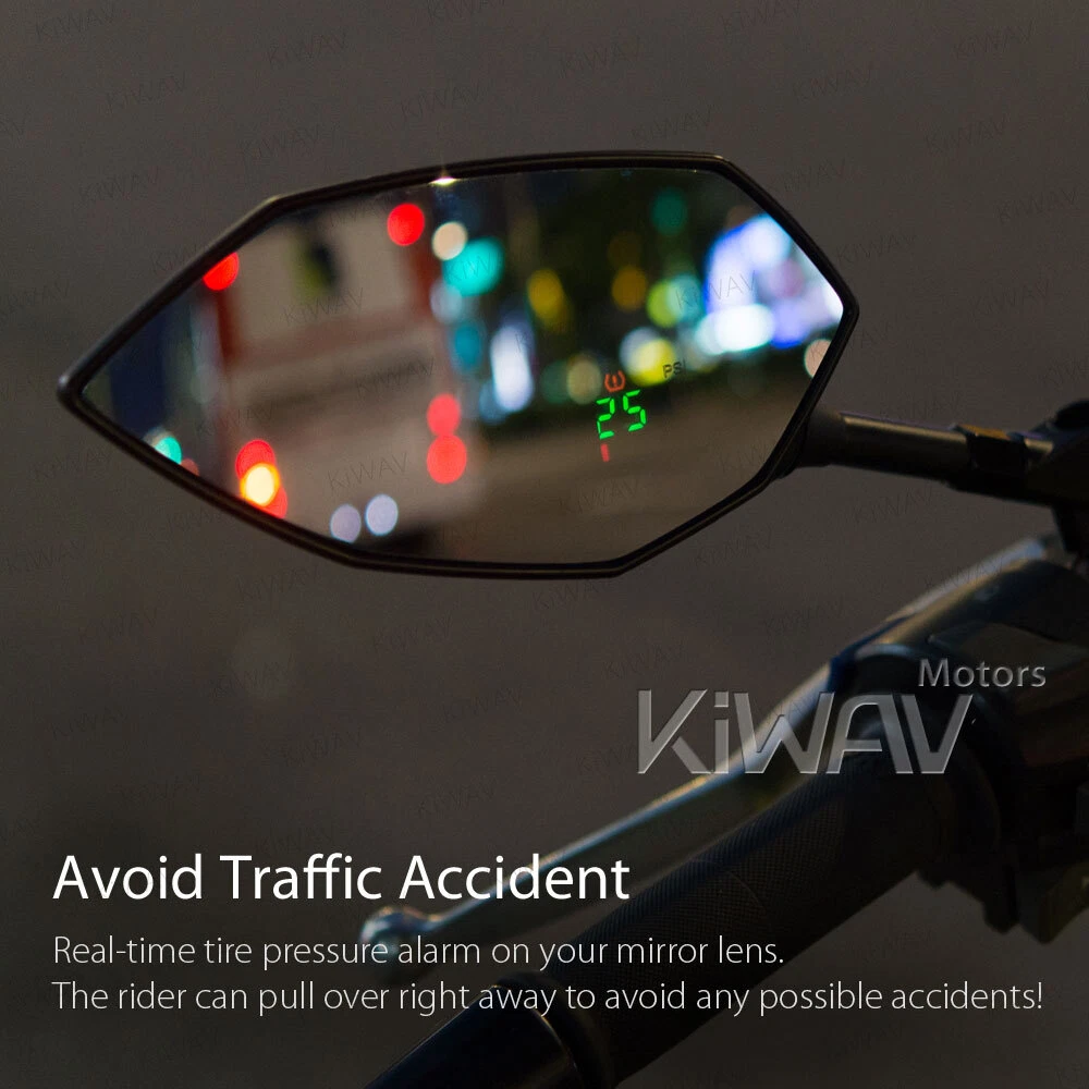 Check the tire pressure in an easy way: rear view mirrors + TPMS display 2 in 1! Universal fit for 10mm & 8mm motorcycles with wheels from 10" to 18". motorcycle mirrors Buck black with TPMS 8/ 10mm universal WARNING: Colors may vary depending on monitor profiles and printer settings. Video We have clear mini videos which shows more details and helps to visualize your modification before actually having it on hands. Your browser doesn't support HTML5 video. Measurement Please must check the measurement before making final decision. Please allow measuring deviation due to manual measurement. Item size measurement graph Download or Copy this link: https://kiwav.com/kiwavebay/product/01/mirror/BuckTPMS/KiWAVmotors-mirror-Buck-TPMS-full-scale-measurement.pdf Visualize It Right Away! This is a printable 1:1 actual size to download and print. Pictures might look perfect; one thing that is not showing in the photo is the actual size of the mirror. 1:1 printable motorcycle mirror paper usage Specification SKU: 101004419280003 Features Check the tire pressure in an easy way: rear view mirrors + TPMS display 2 in 1! Showing tire pressure, battery voltage wirelessly, through hidden display inside mirror lens. Internal type of sensor, more accurate than external cap type sensor. Low or high tire pressure alarm with visual red LED. Bluetooth 4.0 wireless data transmission. Battery life depends on usage. In average it’s more than 3 years. Allows easy access for tire maintenance with L-type valve, makes checking and inflating your tires easy. IP68 waterproof - The hidden display module passed the IP68 test, means that will give reasonably water-resistant in daily use. The pressure and the temperature of tires can also be viewed from the app if pairing with Bluetooth smartphone. Mirror: Wider vision with convex lens and E-mark approved. Mirror: Swivel adjustable ball joint, find the best rear view angle and ready to go. Material Mirror Housing: ABS plastic Mirror Stem: Aluminum Air Valve: Aluminum TPMS SPEC Storage temperature: -40°C ~ 125°C Operating temperature: -20°C ~ 105°C Operating frequency: 2.4GHz Detect pressure range: 0 ~ 92 psi (637kpa) Shape Diamond / Other Glass Chrome convex lens Weight n.w.: 810 g./ 1.78 lbs. (pair), g.w.: 1110 g./ 2.44 lbs. (total package, packing inclusive) Color Black Adjustment Fairly adjustable Wire Length 1110mm / 43.5inch Package A pair of mirrors (Left hand / Right hand), TPMS sensor x 2, L-type air valve kit x 2, 10mm standard thread bolt x 2 PCS, 10mm reverse thread bolt x 1 PC, 8mm standard thread bolt x 2 PCS, 8mm reverse thread bolt x 1 PC, bolt cap x 2, cable tie x 2 Compatibility 110mm(1.25 pitch): Universal compatible with 10mm thread motorcycles 5/16": Compatible for most Harley Davidson, including '21 later Revolution® Max engine-equipped models, Nightster, Pan America, etc. (except XG street models) Compatible for BMW R18 series models. Fit wheels from 10" to 18" (Please make sure your rims' width is more than 27mm and depth is more than 28mm) aprilia BMW BSA Buell DUCATI Honda Husqvarna Hyosung Indian Kawasaki KTM KYMCO Lambretta MOTO GUZZI MV Agusta Norton PGO Piaggio Suzuki SYM TGB Triumph Vespa Victory YAMAHA 1. Consult a mechanic or a local store before performing any actions. 2. Read the instruction and video before installing the TPMS sensor. KiWAV, kiwavMirror, kiwavmotor, motorcycle, Buck, BuckTPMS, TPMS, universal, naked, black, 10M, 8M How do I know if these mirrors fit my bike? If you're not sure, there are a few tips for you. Q: How do I know the size of my mirror thread? Please remove your current stock mirror and measure the diameter of the bolt. Q: How do I know the mirror thread pitch of my bike? Most big bike mirror thread is 1.25mm pitch, there are certain BMW big bikes mirror thread is 1.5mm pitch. Here's how you could measure: Use a vernier caliper. Find a screw that you're sure is 1.25mm pitch. Try to compare the mirror thread of the two. If it fits, it will look like this. Rule of Thumb Most big bike mirrors have 10mm standard/clockwise thread. Some Yamaha/Ducati, however, have a reversed/anti-clockwise thread and a standard/clockwise thread. Reverse thread mostly found on the right hand side mirror (view from the bike seat). These 5/16" bolts are for Harley-Davidson only. 8mm are for most scooters' mirrors. Some Yamaha scooters have a reversed/anti-clockwise thread and a standard/clockwise thread. Reverse thread mostly found on the right hand side mirror (view from the bike seat). Check the bolt area of your bike, and the bottom of our mirror stem to see if they fit. Check with your motorcycle dealer, motorcycle forum or Google for the correct mirror thread. We Recommend About "Every ride has its own personality, its own visual identity." With this in mind, Magazi has gone the extra mile to bring cosmetic individuality to its product proposition. An extremely dynamic designer , producer and supplier of mirrors for all type of motorcycles , Magazi's dedicated team of professionals has managed to strengthen and consolidate a brand that for many , is synonymous with flexibility and competitiveness. Magazi's efforts to bring is quality brand to a market that is highly competitive has depended hugely on its ability to produce a range of cost-effecetvie mirrors that has superior design attributes. Payment & Shipment We accept the following forms of payment: PayPal, and credit or debit card through eBay. For E-check payment, shipment will be made until PayPal indicates payment clear. We appreciate immediate payment. If payment is not received within 4 days after auction ended, unpaid item ( UPI ) will be automatically turned on to get the final value fee back. 24 hours Shipment will be arranged within 24 * hours after payment cleared. *Taiwan business days only. Shipping to address We ship to the address provided at checkout to comply with eBay policy. *If you need to change the address, please cancel the order before it ships an