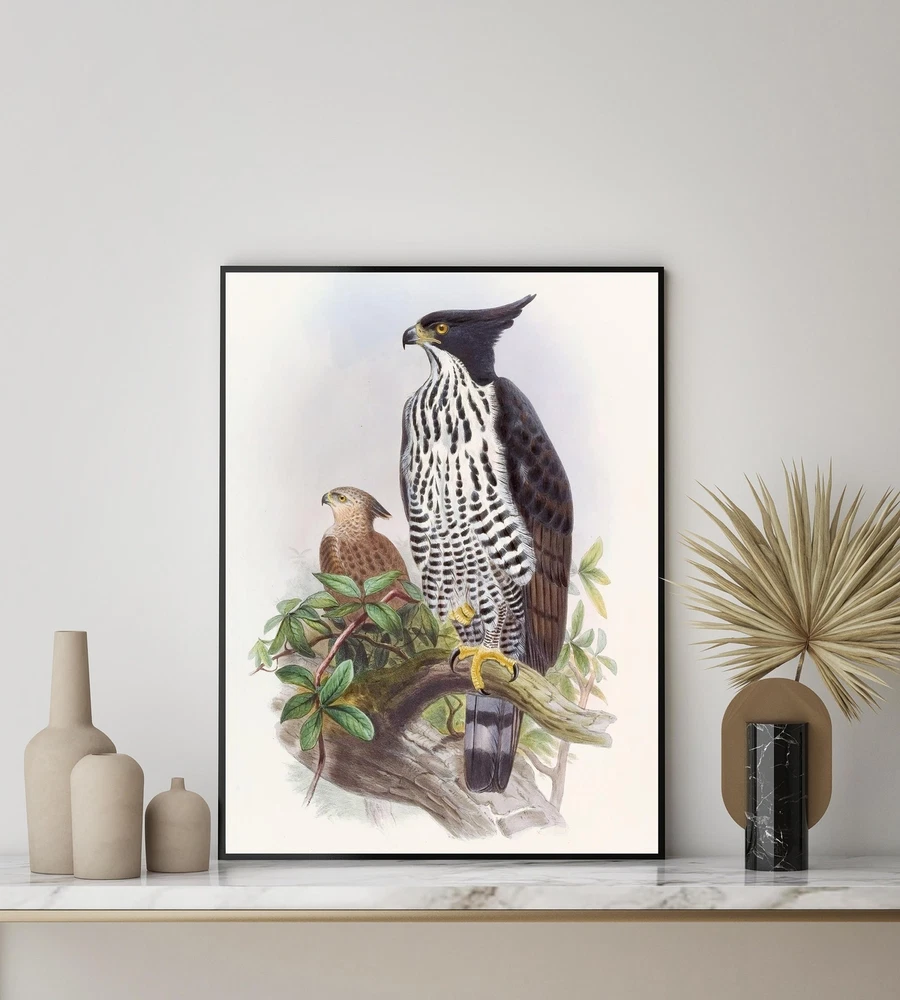 Blackandwhite Crested Eagle 18501883 John Gould Art Print Poster Vintage Bird Wall Art Painting Bird Photo Decor Material: Premium luster photo paper Print type: Inkjet printing One side printed + The finish provides the highest possible resolution and color saturation + Lasts up to 200 years in color and 400 years in black-and-white + Printed on high-quality resin-coated photo base paper medium + Posters can be hung with double-sided tape, tacks, or framed + Hand washing with a gentle cry cloth is recommended for extended durability I will hand select the best choice of paper for your chosen design to ensure top quality results for a beautiful, bright and luxurious print. All prints are sealed in cellophane slips for protection during transportation, and are shipped in a protective cardboard envelope.