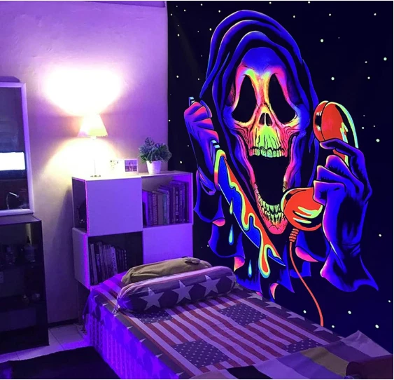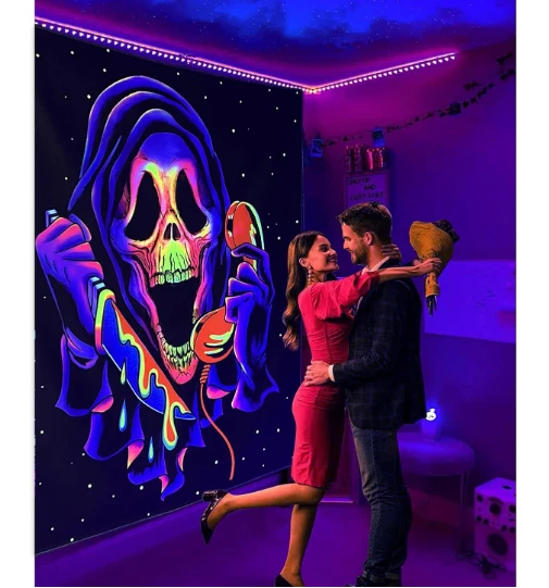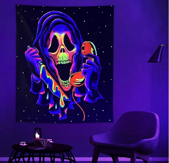 Free eBay listing template designed by dewiso.com Blacklight Horror Skull Tapestry, UV Reactive Cool Ghost Wall Hanging Tapestries, Glow in The Dark Party Backdrop Tapestry for Bedroom, Living Room - 29.5" x 39.4" **Dive into an Otherworldly Experience** Illuminate your space with our UV Reactive Trippy Skull Tapestry. Witness an enchanting transformation as the design leaps to life under blacklight, creating an ethereal and mesmerizing atmosphere. **Crafted with Quality in Mind** Made from 100% lightweight polyester fiber, our tapestry is not only soft to the touch but also durable and environmentally friendly. The intricate skull motif boasts vibrant colors that won't fade over time. **Elevate Your Decor Effortlessly** Enhance any room effortlessly by featuring this tapestry as a striking centerpiece on your wall. Its captivating design and UV-reactive glow make it a versatile addition to bedrooms, living rooms, and entertainment spaces, or a unique backdrop for parties. **Care Instructions Made Simple** Maintaining the allure of this tapestry is easy. Simply hand wash in cold water or machine wash on a gentle cycle with cold water. Tumble dry on low heat for quick cleaning without worry of fading. Avoid bleaching or ironing. **Gift Unforgettable Mystery** Surprise the horror enthusiast in your life with a truly exceptional gift. Our Blacklight Horror Skull Tapestry blends artistry and mystique, ensuring it stands out as a memorable present for birthdays, holidays, or any special occasion. [Shop Now] Unleash the magic of UV reactive art in your space with our Blacklight Horror Skull Tapestry. Product Description **Embark on an Enchanting Journey** Step into a world of intrigue and visual fascination with our Blacklight Horror Skull Tapestry. This captivating piece is crafted to elevate your space, infusing it with artistry and mystique that's sure to make a statement. **Cast a Captivating Glow** Unveil a captivating realm of darkness with the tapestry's glow-in-the-dark feature. Watch as it casts an eerie and captivating ambiance, perfect for themed parties or setting an unforgettable atmosphere. **Transform Your Sanctuary** Select our tapestry and turn your room into a personal sanctuary. Let the intricate design and haunting glow transform your space into a place of intrigue and allure. **Share Art and Aesthetic Joy** Gift the joy of art and aesthetic beauty to your loved ones. Our tapestry makes an excellent gift, allowing family and friends to revitalize their living spaces with a touch of nature-inspired allure. **Get Yours Today!** **Features:** - **Material:** 100% Lightweight Polyester - **Size:** 29.5" x 39.4" (75cm x 100cm) - **Shape:** Rectangle - **Other Features:** One side printed, hand-sewn details **Package Contents:** - 1 x Blacklight Horror Skull Tapestry - 1 x Pack of Hanging Accessories **Notes:** 1. Colors may vary slightly due to individual monitor settings. 2. Tapestry size may have an error of 1-2cm due to hand-cutting. **Warm Tips:** 1. Easily hang the tapestry using thumbtacks or mounting tapes. We provide hanging accessories for your convenience! 2. Upon receiving, iron the tapestry to remove any creases before hanging it on the wall. 3. Customize your tapestry with favorite sizes, pictures, or text for the perfect gift or casual accessory. Contact us to create your own unique tapestry. NEEDMART