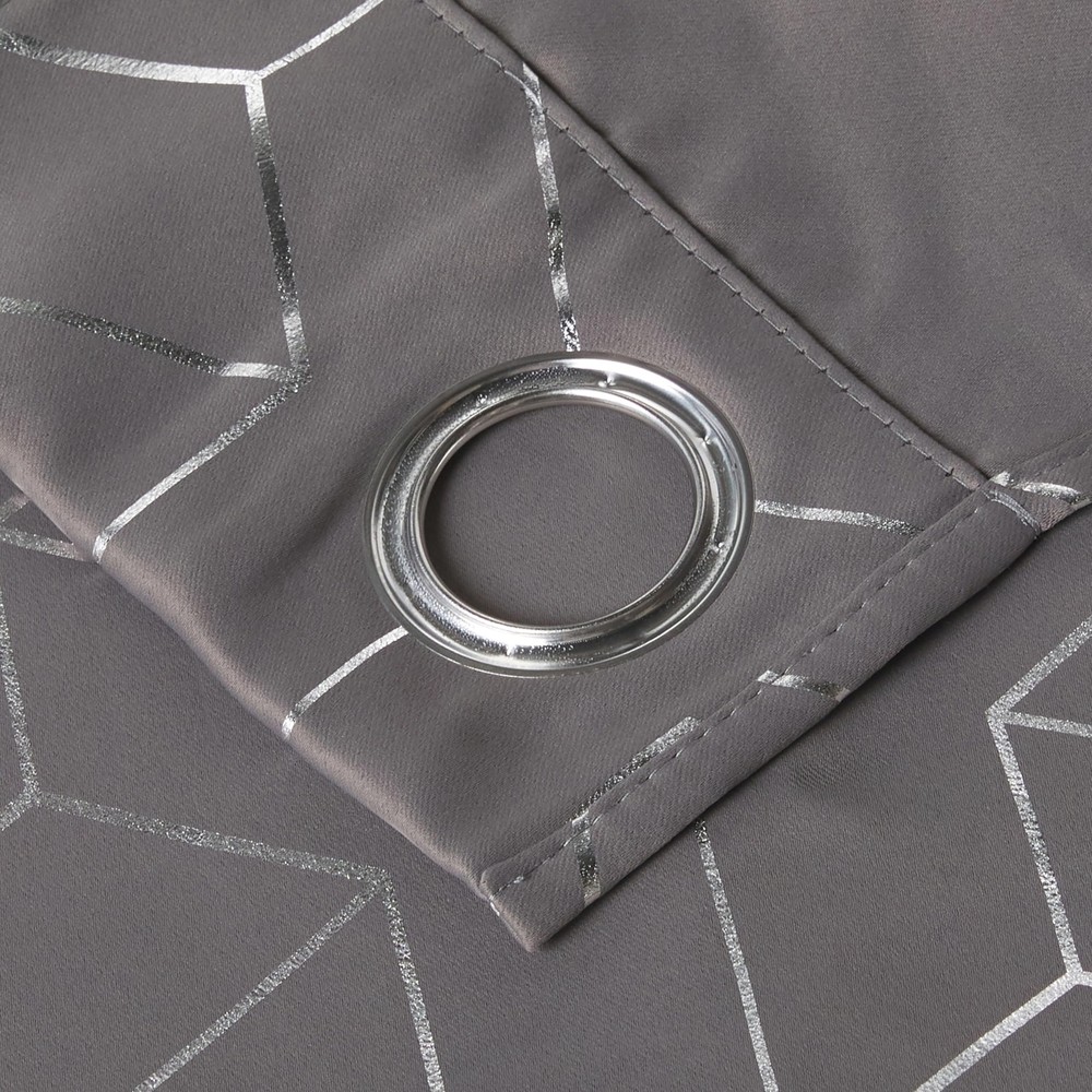 Blackout Curtains ELEGANT DESIGN: 2 panels per package. Each Blackout Curtain measures 52" wide x 95" long. The design of silver grommet (1.6 inch inner diameter) creates casual elegance for your house, which makes the curtains easy to install and slide. FOIL PRINTED: The classic silver T-shaped pattern on the background gives the curtains an exclusive elegant look. With digital print technology, beautifully printed with the vibrant design shown. WISE BUDGET: Protect your furniture and floor exposed to the sun, while still balancing the room temperature in summer and winter. Privacy protection. The greatest benefit is to bring you a good night's sleep, making you full of energy every day. WIDE COMPATIBLITY: Don't bother looking for sheer curtains to match, choosing different styles of voile curtains with white color in . Such curtain sets provide a more permanent harmonious window dressing, making your home lively. EASY CARE: Good quality finishing will withstand years of use. Hand washable and Wash the water temperature below 86℉. Mild detergent no bleaching. Low temperature ironing. Don’t use sharp things scratching curtains.