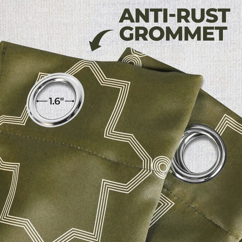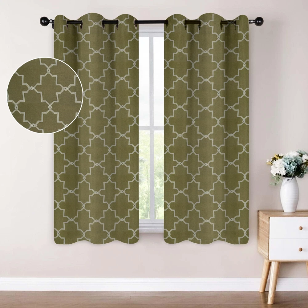 Sleep in utmost comfort and with the exquisite Trellis Blackout Curtains. This lovely panel duo reduces up to 70% of sunlight and UV rays and features a triple-weave for a thicker, more decadent curtain. Crafted from 100% polyester with rod pockets or a stainless grommet header (depending on size), these curtains are durable and modern in design. Available in various colors and sizes, the gorgeous lattice pattern has a versatile matte finish that adds timeless beauty to your decor. DURABLE AND PRIVACY-ENHANCING: Crafted from 100% polyester, our blackout curtains block 70-80% of sunlight and UV rays; the thick triple-weave fabric maximizes privacy, making them perfect for bedrooms or living rooms; Set Includes: (2) Curtain Panels ENERGY SMART: The thermal insulating fabric balances room temperature and helps protect your home from summer heat and winter chill; impress your guests while staying comfortable, and protect your furniture with these prestigious and versatile curtains VERSATILE HEADER: Drape these curtains with style and convenience; depending on size, the curtains feature different headers: 26" width curtains come with a rod pocket header, while 42" and 52" width curtains feature stainless steel grommet headers EASY TO MAINTAIN: For luxurious results, these polyester curtain panels are machine washable; wash cold on a gentle cycle and tumble dry low; do not bleach; press with a warm iron when needed; always care label instructions for best results EXCELLENT GIFT: Our curtain designs match a variety of styles and make great gifts for friends and family; perfect for weddings, housewarmings, or any holiday; instantly update any room in your home, dorm, or apartment with this curtain panel set