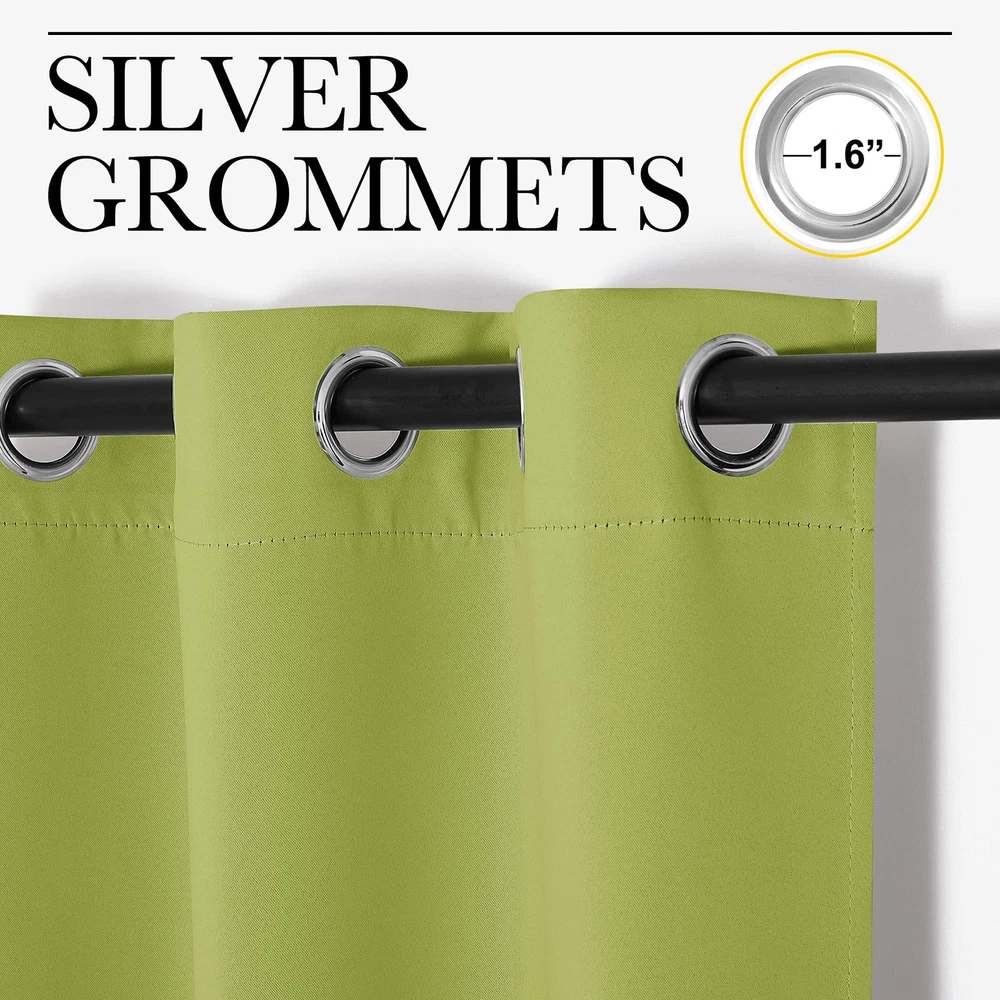 Patio Glass Door & Window Curtain ELEGANT DESIGN: A panel BLACKOUT CURTAIN per package. Each Curtain Panel measures 120" wide x 108" long. The grommets don't feel flimsy, they are fairly lightweight, and slide easily along the rod, fitting the curtain rod up to 1.6 inches in diameter. NICE MATERIAL: This smooth, soft and heavy-duty blackout fabric is woven with three-layer construction. The middle layer of black yarns creates a curtain panel that is excellent for blocking out 85%-99% of light (Dark color works better on blocking light) while adding a pop of color to your room. MULTIFUNCTION: This Blackout Window Curtain keeps out the heat in the summer and they are very helpful in the winter. There is a noticeable change in room temperature when they are closed and look elegant when opened. Curtains are also fantastic for a late morning sleep in as they keep the sun out. GOOD CHOICE: It blocks the sunlight while adding a pop of color to my room. The color is brighter in natural light, all my bulbs give a slightly yellow light. Besides, you can choose blackout valance and sheer curtains in the to match. Such curtain sets provide a more permanent harmonious window dressing. EASY MAINTENANCE: Good quality finishing will withstand years of use. Machine washable and Wash the water temperature below 86F. Mild detergent no bleaching. Low-temperature ironing. Measure your pole and window size before you choosing curtains.
