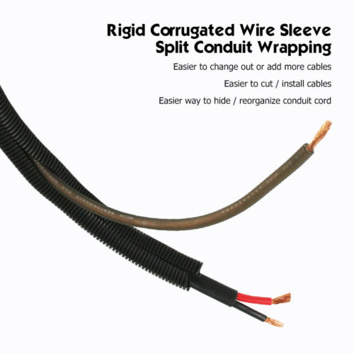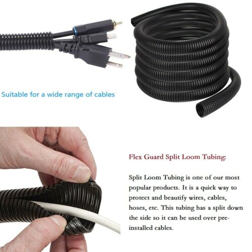morethink , as an expert in the field of cable management,insist on providing customers with the top quality wire management products. Our cable management is used to wrap and protect wires & organize cables & hide and conceal wires in many application, e.g. Automotive,electronics, home and office etc. Split Wire Loom - Management & Protection Cabes / Wires Adjustable Length & Easy to Install Say goodbye to cluttered cabling eyesores that are impossible to ignore. Our Split Wire Loom Conduit will keep your wiring setup organized and tangle-free. Ensures that the cables behind your TV or computer remain neat and tidy. Flexible braided material ensures it won't scuff up the room either. Hide and conceal TV cords With our top quality cable concealer,You can easily hide cables and cords.Compared to other on-wall cord cover raceway, our cable hider is no glue , no break the wall and easy to replace. Our Wire Loom resistant to various abrasions, reduct damage,arrange the harness cable.Prevent Pet From Chewing Cords There are other colors to choose from in the shop!!! There are many applications of Split Conduit ··· ⭐: Split for easy installation and cable access(Easier handling, inspection and maintenance of wires.) ⭐: UV resistant,Flame Retardant,Resistant to abrasion, gasoline, oil, and many other etc ⭐: Wire protector tubing is used to wrap wires,and make cables wires neat and orderly ⭐: It is lightweight, very flexible and provides abrasion protection, crush resistance and is easy to install over wires. ⭐: This highly flexible conduit can attribute to a sleek, finished appearance by concealing unsightly wires. ⭐: Good flexibility. No poison and no smell ⭐: Best resistance to the hard weather conditions and minus pressure ⭐: With high glossy surface. Having a simple piece of tubing around your wires can preventing pet ,such as bunny ,puppy and mouse etc from having a chew on them. Sturdy and Flexible Split Wire Loom Conduit Is Very Popular! You can choose Any Inner diameter / Outer diameter Size!!!There will be a little error in the size, please forgive me Description: ●Polyethylene split loom tubing has become one of the most popular conduits for holding groups of wires in position and protecting the wires against abrasion or crushing. ●Suitable for wire and cable pipelines for automobiles, ships, homes, offices, industrials, etc ●Uses: Organizes, Protects, and Holds Wires/ Cables Together for Various Applications and Projects ●Easy Install: The split that runs along the whole length of the loom makes wire insertion easy and once the wire run is inserted, the split remains closed. ●Application: High Quality, Durable Split Loom Tubing Cable Conduit Perfect for Industrial, Automotive, Household, and Marine etc Applications ●Just open the tubing along the slit and insert the wires. Wire loom is guaranteed to add trimness, fortification, and style to any application, large or small.Ideal for outdoor use, as it can shelter contents from rain, snow, sunlight and UV rays, salt, and even automotive fluids with no damage to the loom itself Made from durable polyethylene, the corrugated channel offers not only abrasion resistance, but also defense against puncturing, friction, and other forms of agitation that can otherwise damage delicate cabling. Features: ⭐: Ribbed design allows for a flexible tube that is easy to install ⭐ : When bent or twisted, the split remains closed ⭐ : Resistant to abrasion, gasoline, oil, and many other chemicals ⭐ : Wire protector tubing is used to wrap wires,and make cables wires neat and orderly ⭐ :A continuous split throughout, allowing the user to easily add/remove cables one at a time or in bulk with or without a wiring tool. ⭐ :It is lightweight, very flexible and provides abrasion protection, crush resistance and is easy to install over wires. ⭐ :This highly flexible conduit can attribute to a sleek, finished appearance by concealing unsightly wires. Split Flexible Conduit Flexible split conduit, created and designed for the protection and structure of running electrical wiring through machinery or buildings. Split conduit is a strategic choice for users who are looking to enclose cables in a tidy fashion or needing to repair damaged conduit. Typical Applications ★Cable assembling ★Under floor wiring ★Cable management and tidying ★Great protection for wiring looms and harnesses ★Enclosing fiberoptics Usage: ★Great for use in automotive applications such as installing power cables in your car. For example, if you are running a power cable from a fuse block to your amp ★ Loom tubing is also perfect for installing and protecting custom wire harnesses. For example, you can bunch all your AV cables into one tube segment for running a signal between a TV or Projector to other devices such as your amp and DVD player. ★This split loom tube can also serve as a great cable management solution in the office for organising computer cables, network cables and power leads ★Great for organizing and protecting multiple cables. This tube is split along its entire length making it easy to add and remove cables from it. ★This wire loom is also available in larger and smaller diameters,You can choose your need size or length for dressing TV/Stereo/PC/game areas, wraps cables tightly but not too tightly&securely, so easy to add cable, best and easiest way to hide mess cords, reorganize all cables Working Temperature:30℃-110℃ Short Term Use Temperature:30℃-110℃ You can select the size or length from the drop-down list This Wire Loom is measured by interior diameter (ID) The Diameter measurement would be (3%-8%)difference. Please make sure you DO NOT mind before you make any payment. We are the direct source. We do wholesale for small businesses and manufacturer(s). Please call or send us a message through the eBay messaging system for a quote for wholesale pricing for rolls and bulk orders.